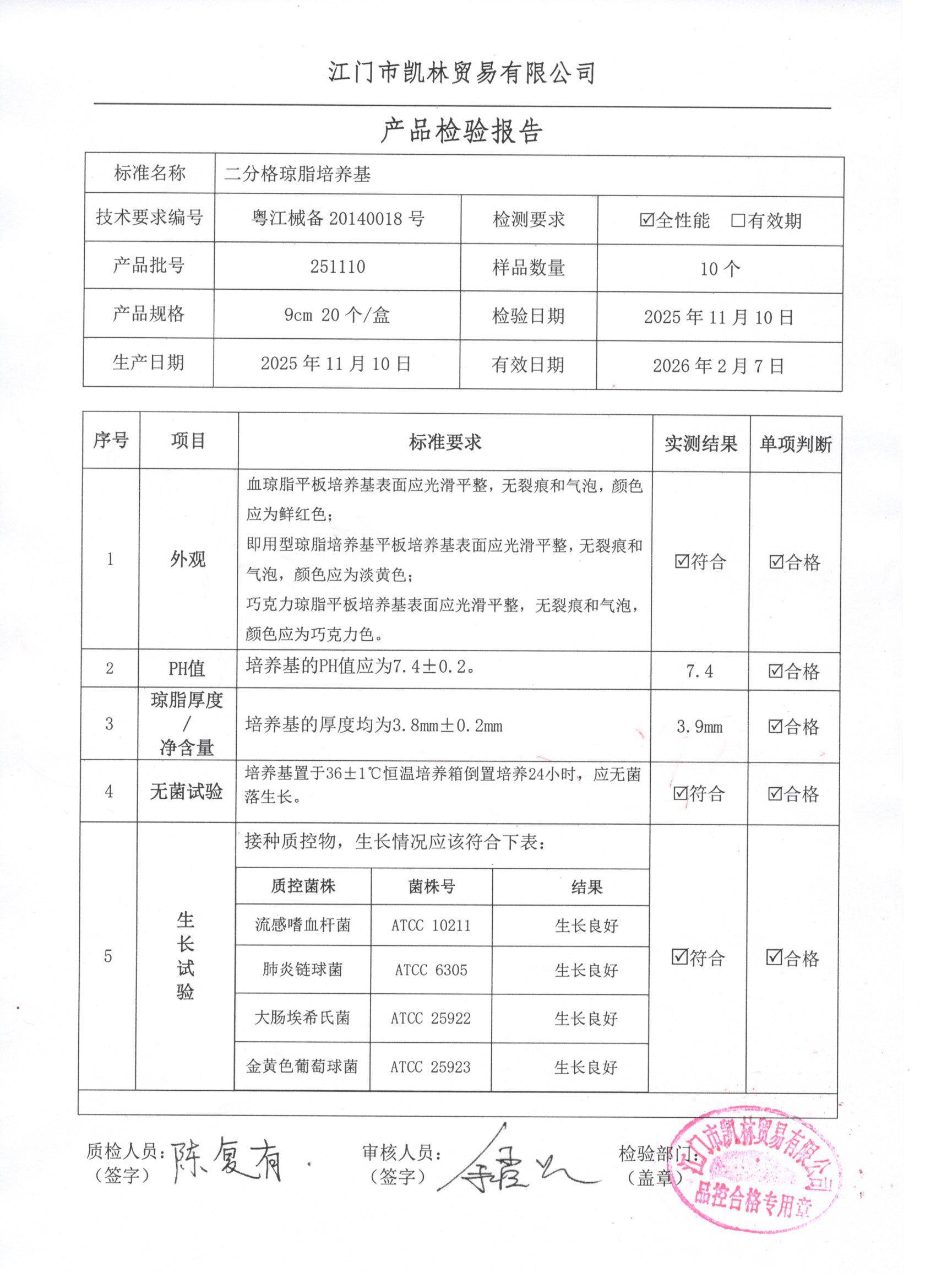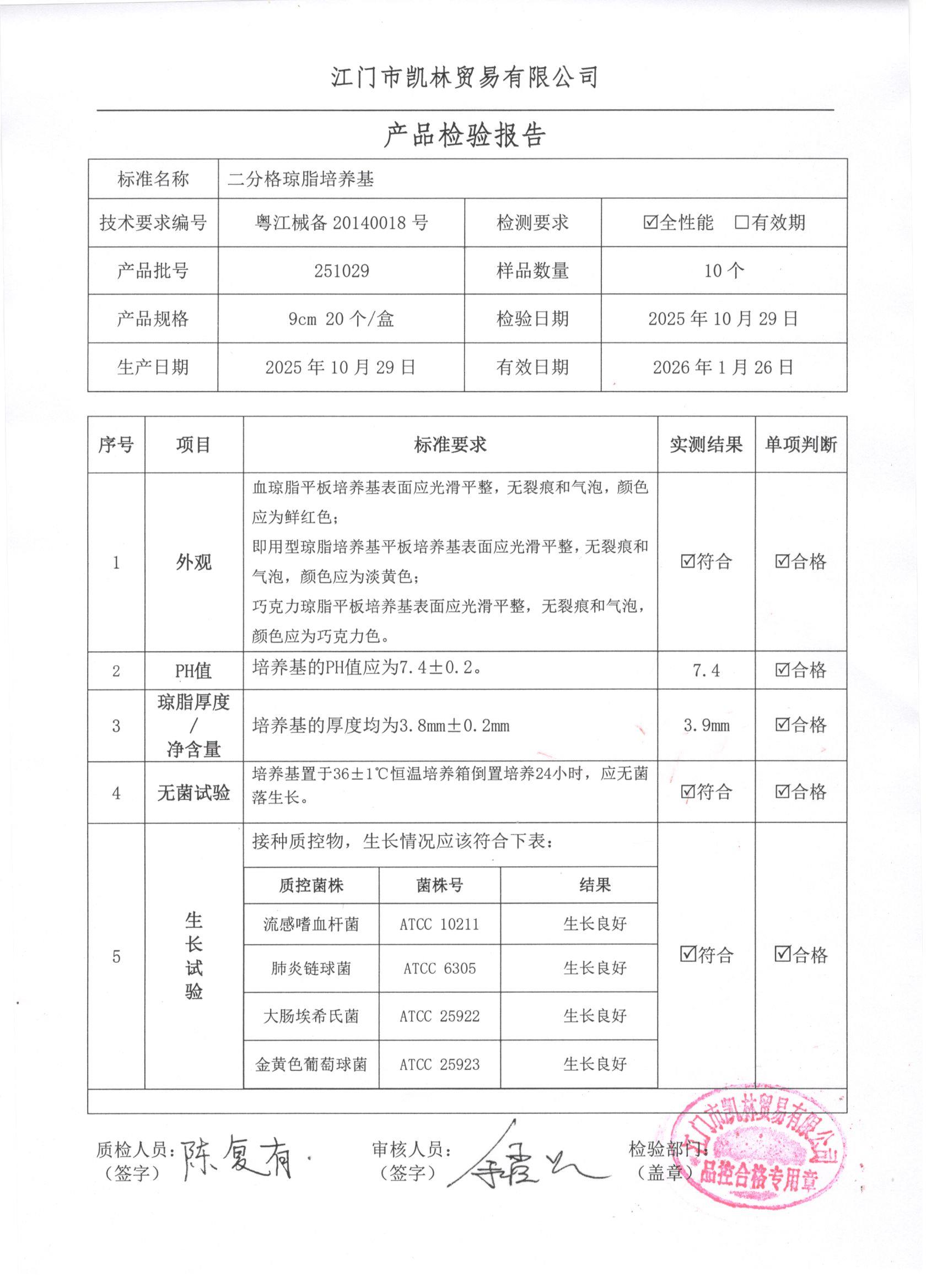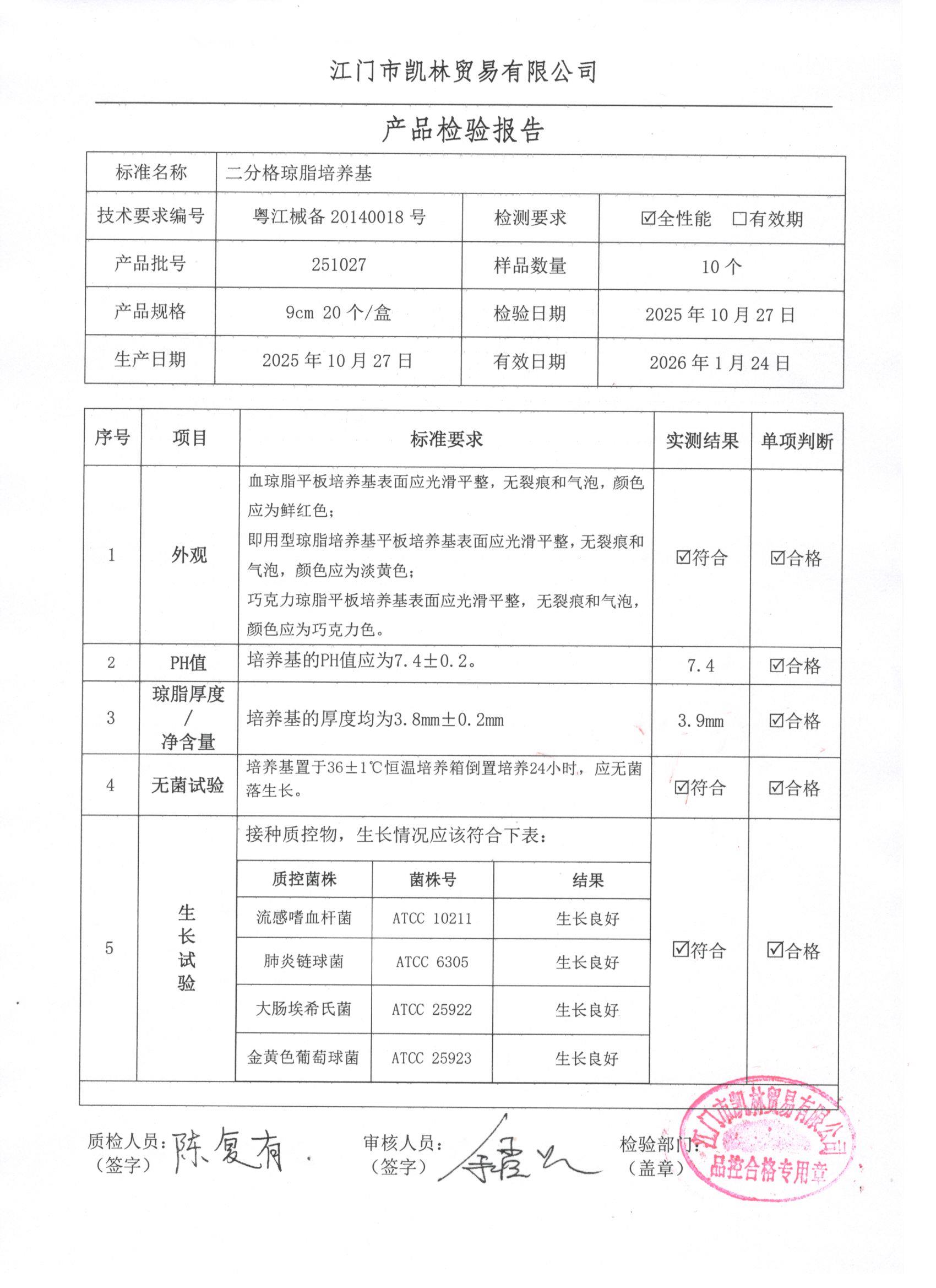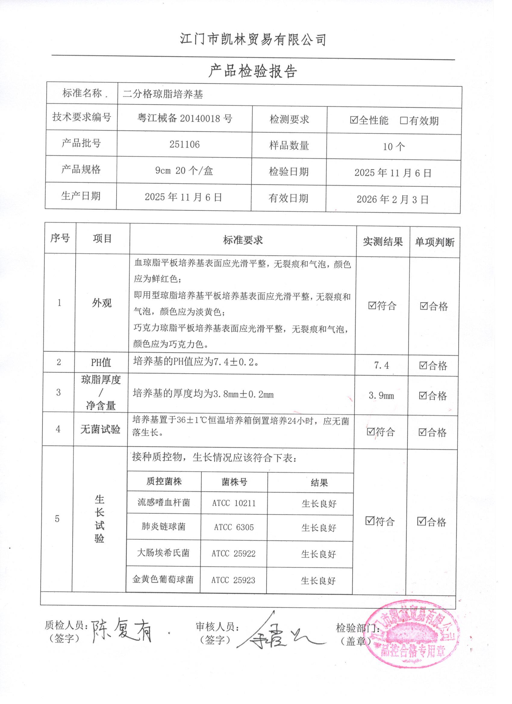 - 二分格琼脂培养基 251206 9cm 江门凯林 下载文件