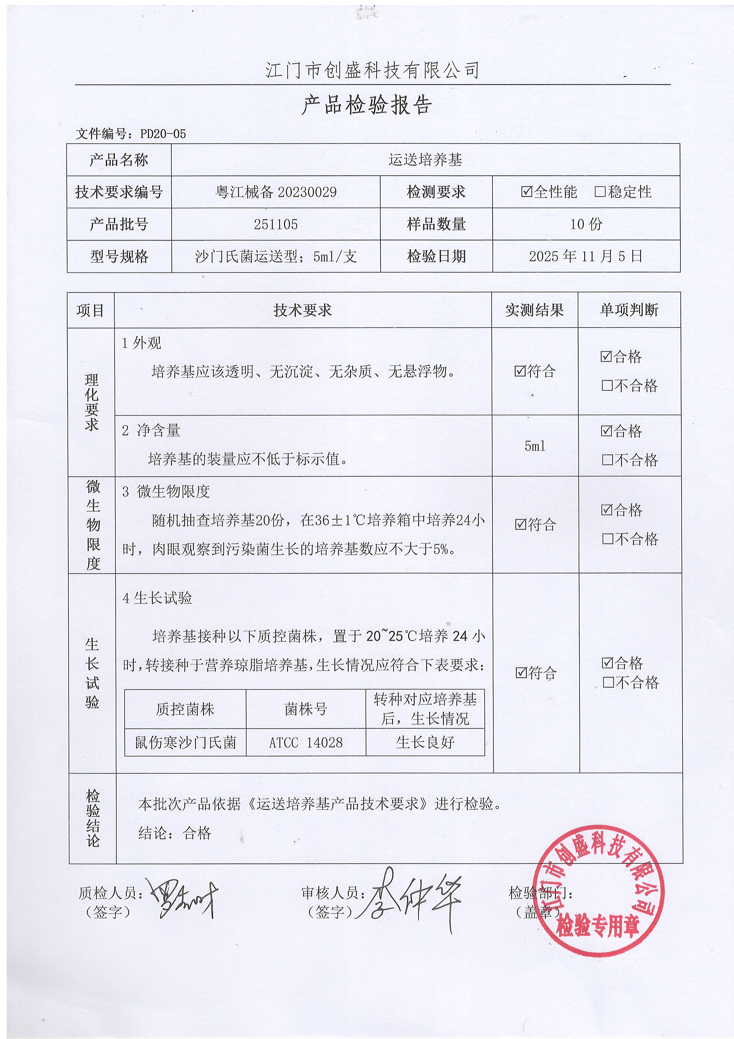 - 运送培养基(生理盐水型) 251202 10ml 江门创盛 下载文件