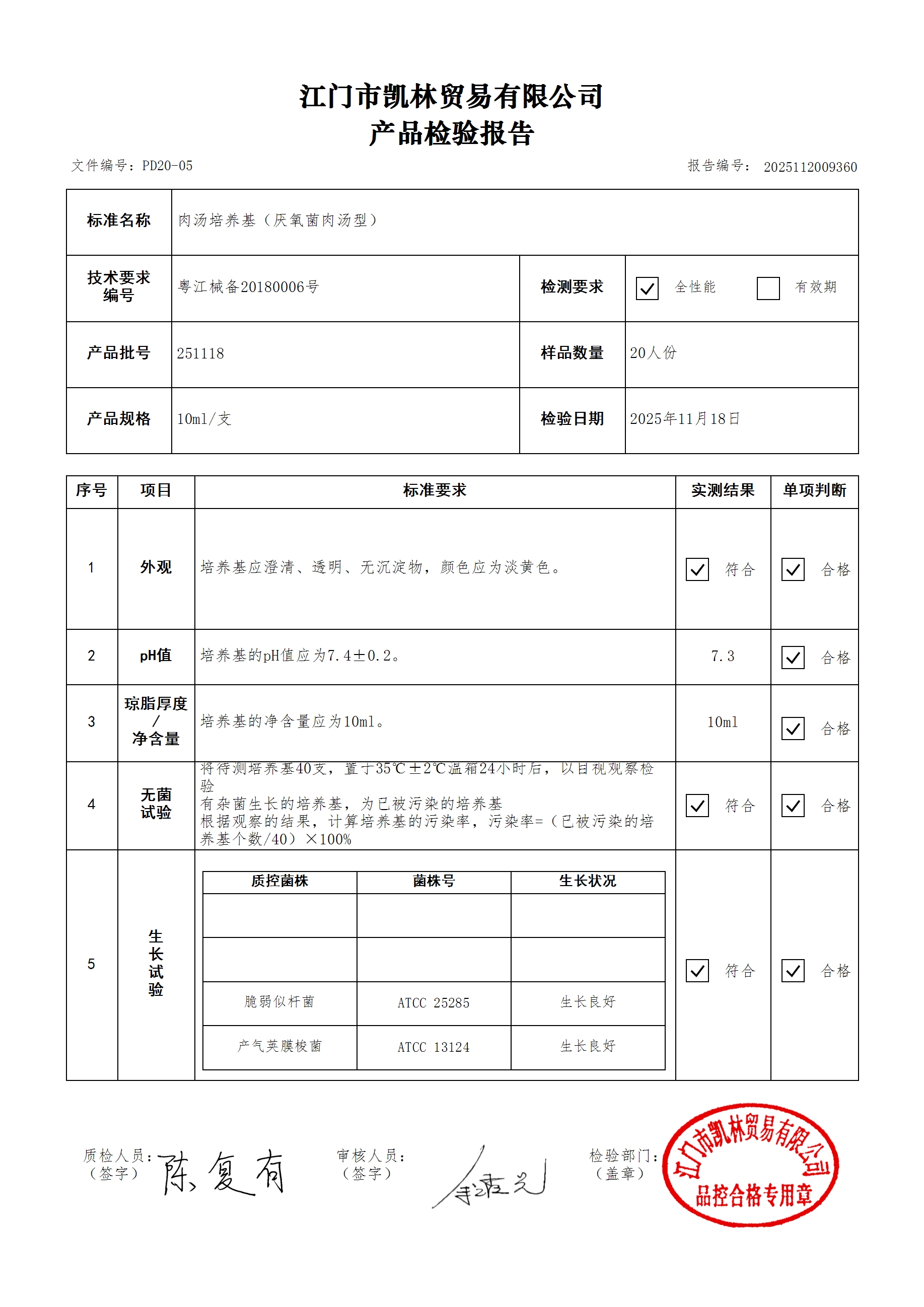 - 肉汤培养基(厌氧菌肉汤型) 250729 10ml 江门凯林 下载文件