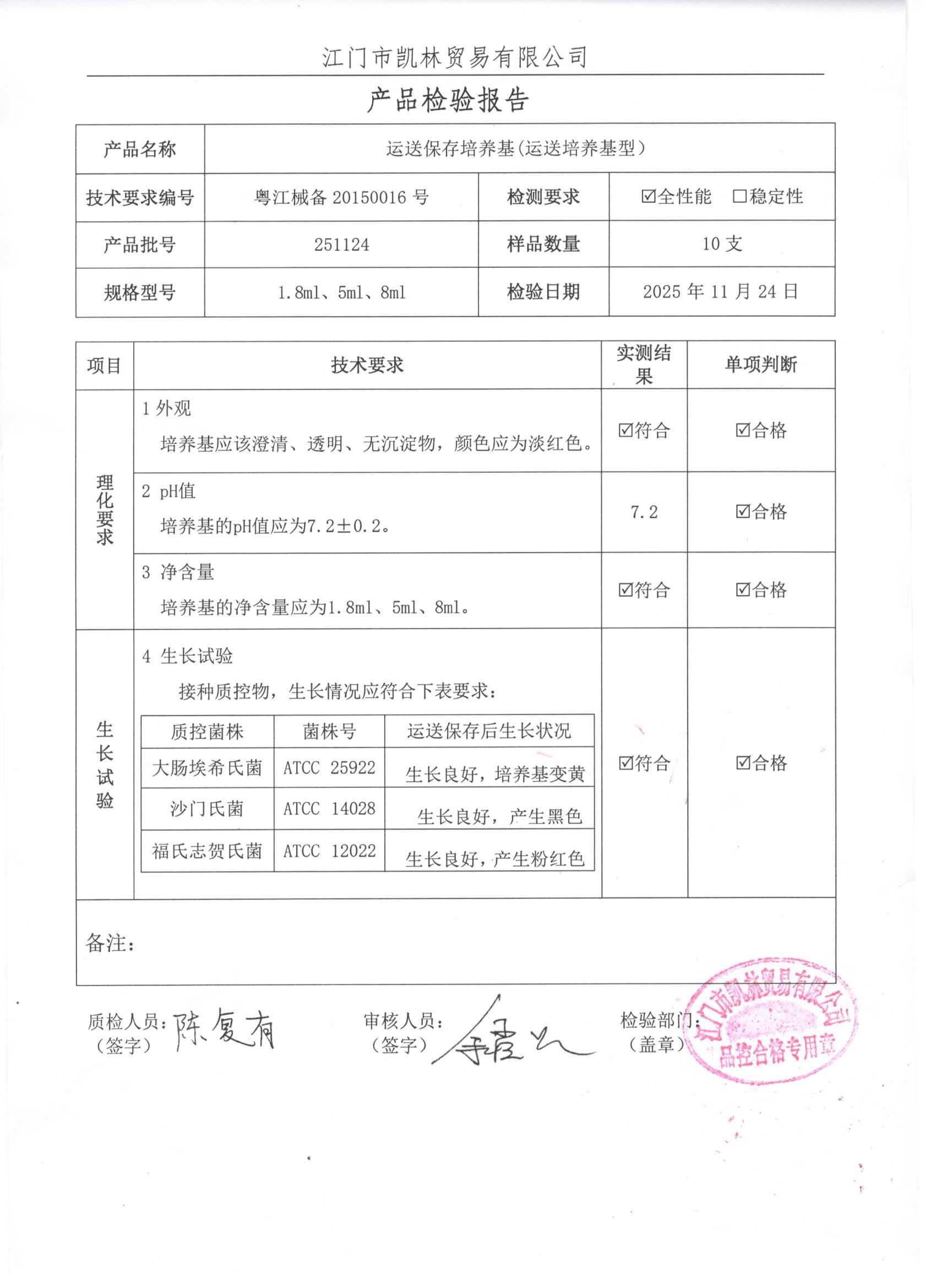 - 运送保存培养基(菌株保存管) 251212 1.8ml 江门凯林 下载文件