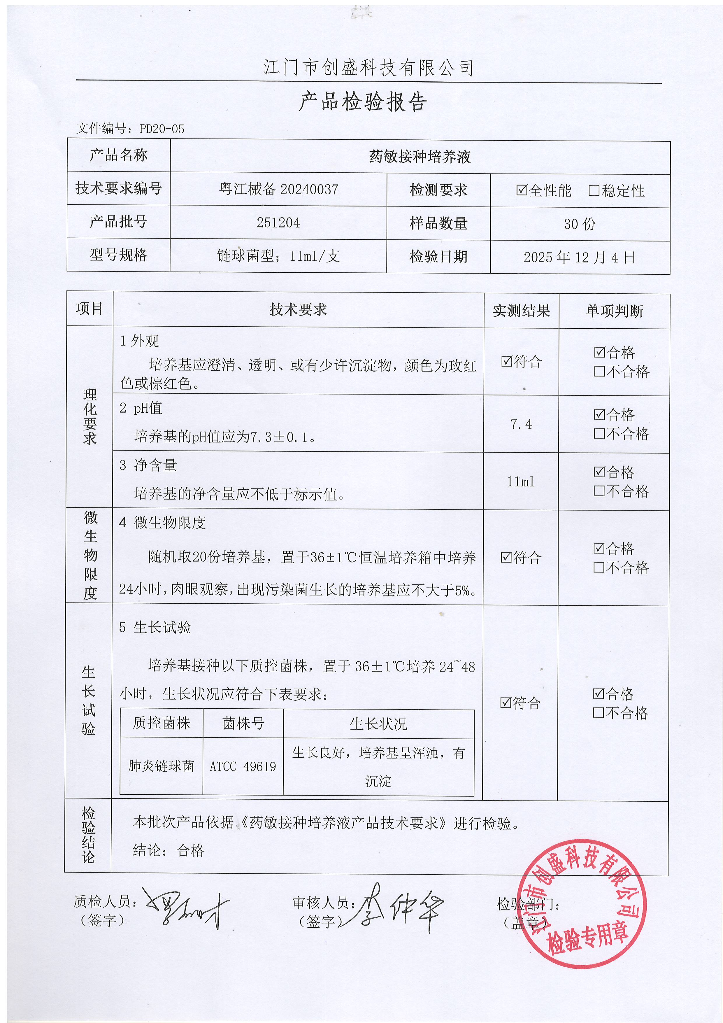 - 药敏接种培养液(链球菌型) 251208 11ml 江门创盛 下载文件