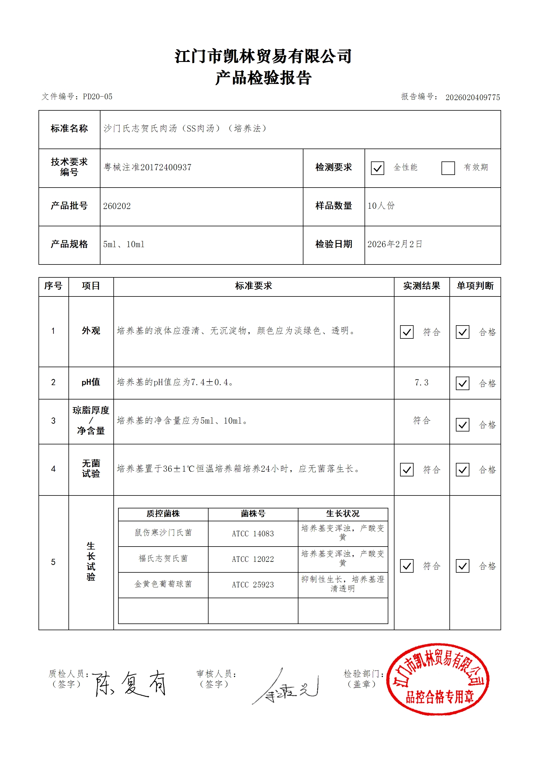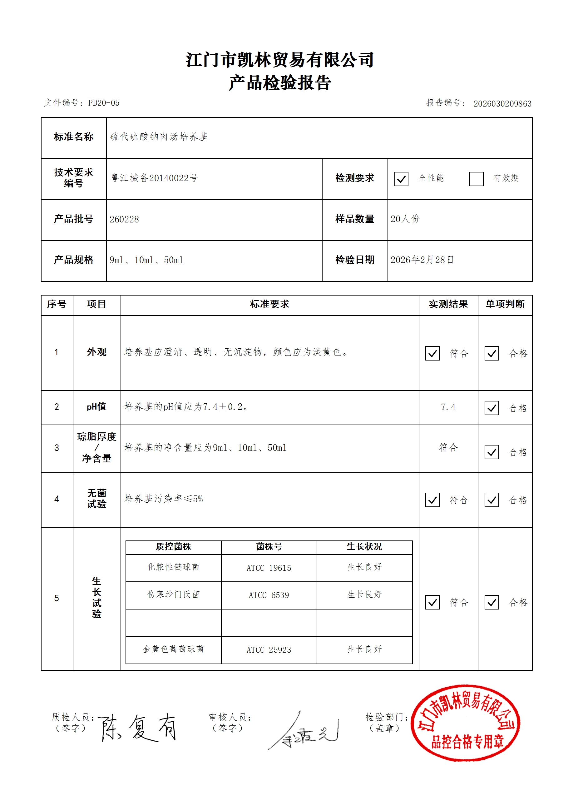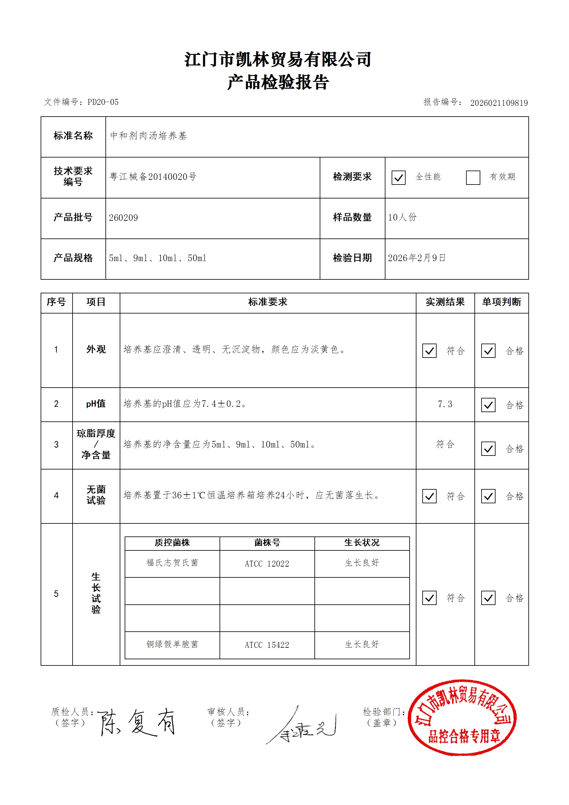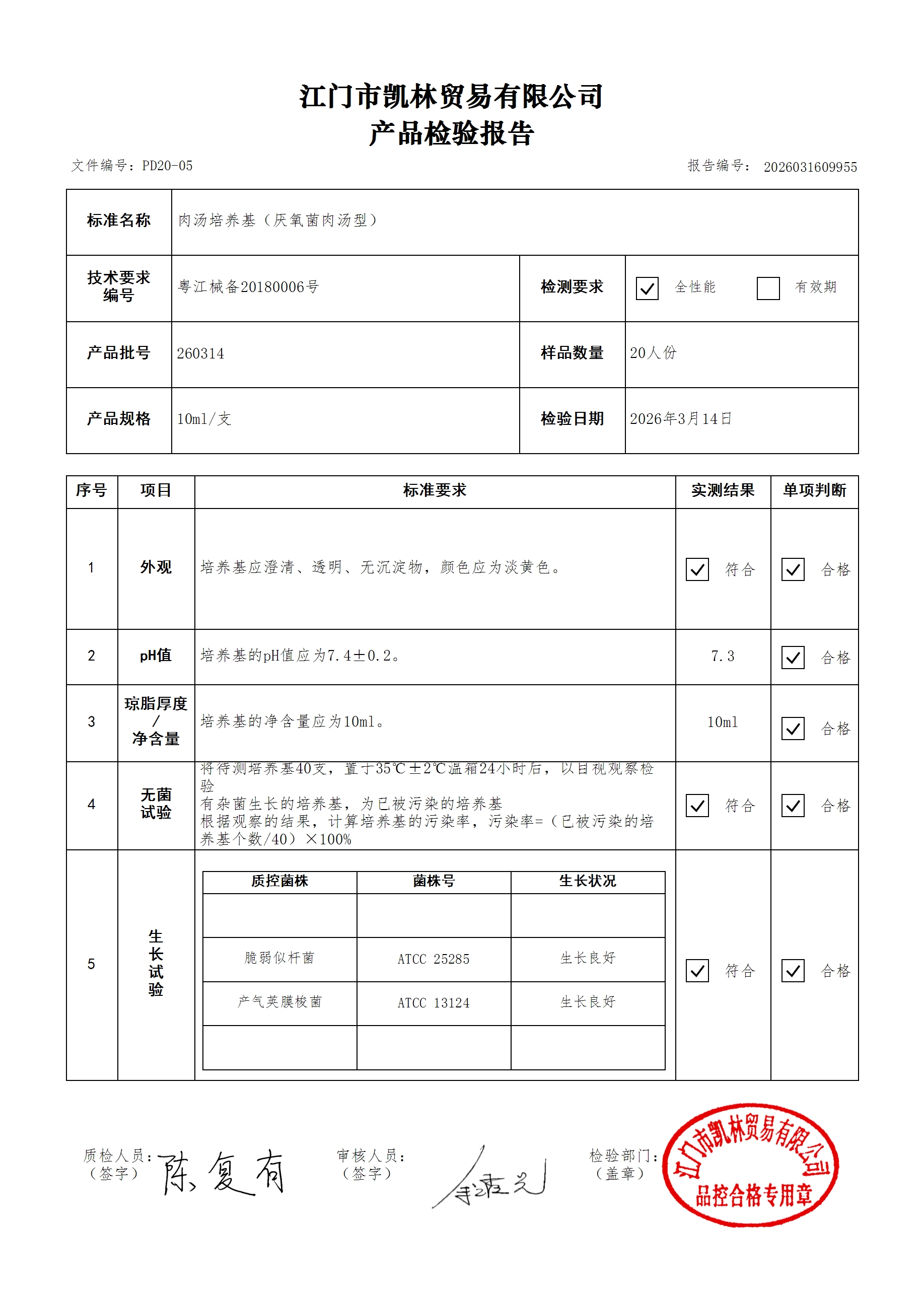 - 肉汤培养基(厌氧菌肉汤型) 260314 10ml 江门凯林 下载文件