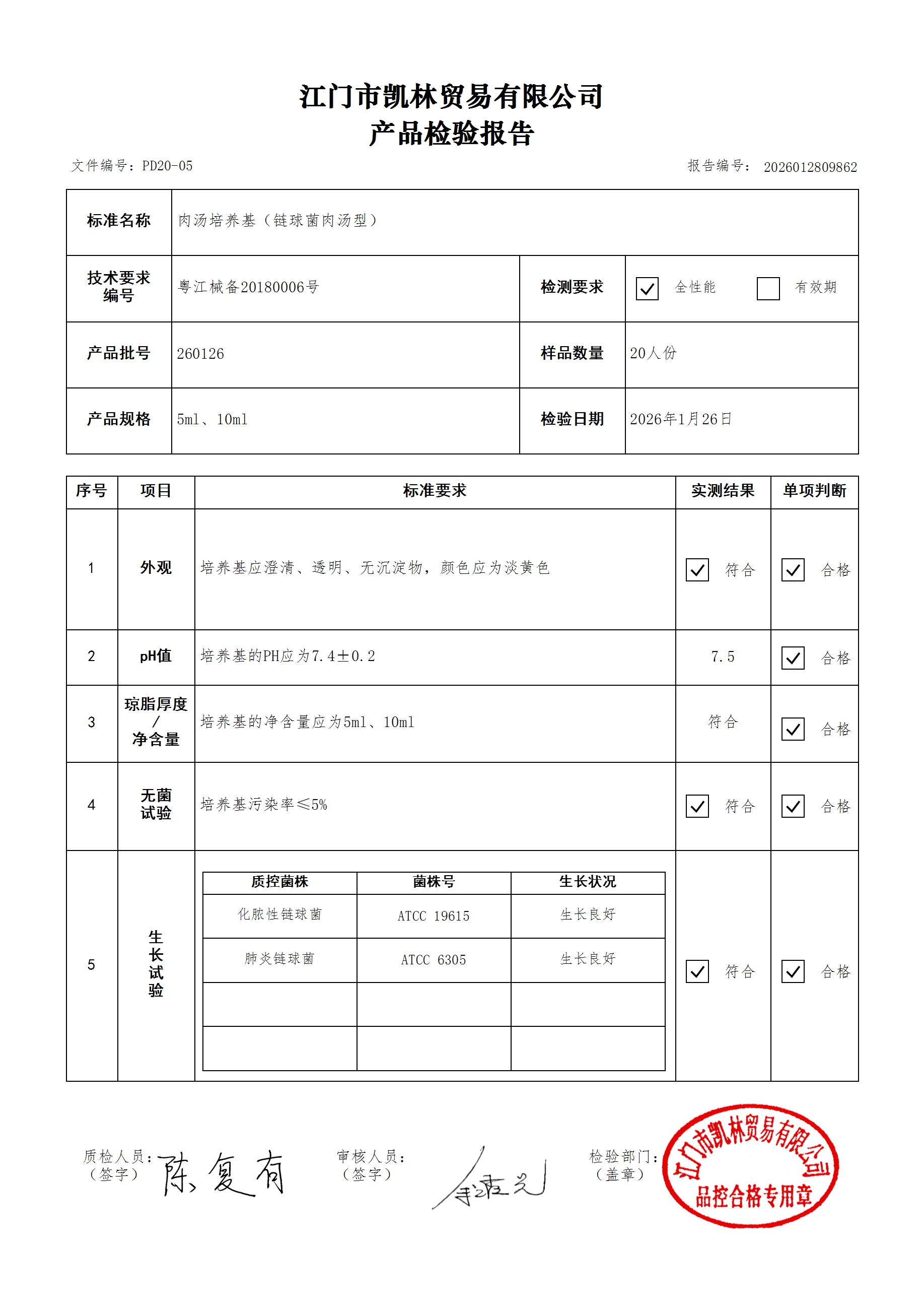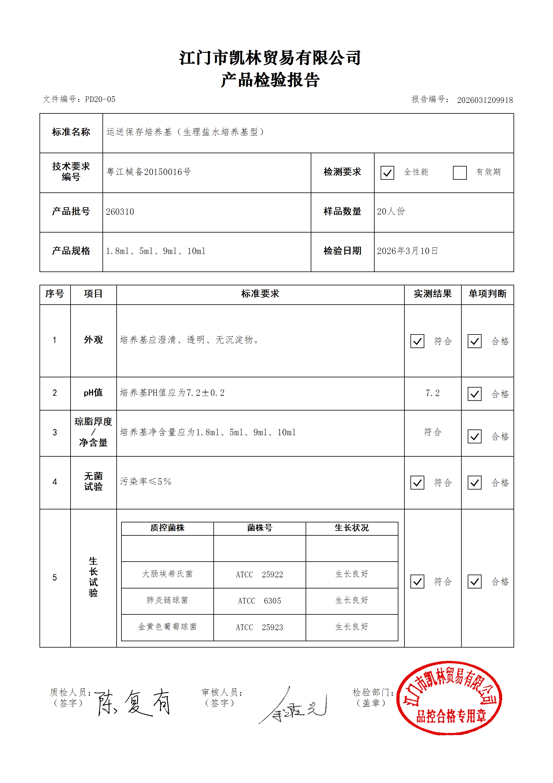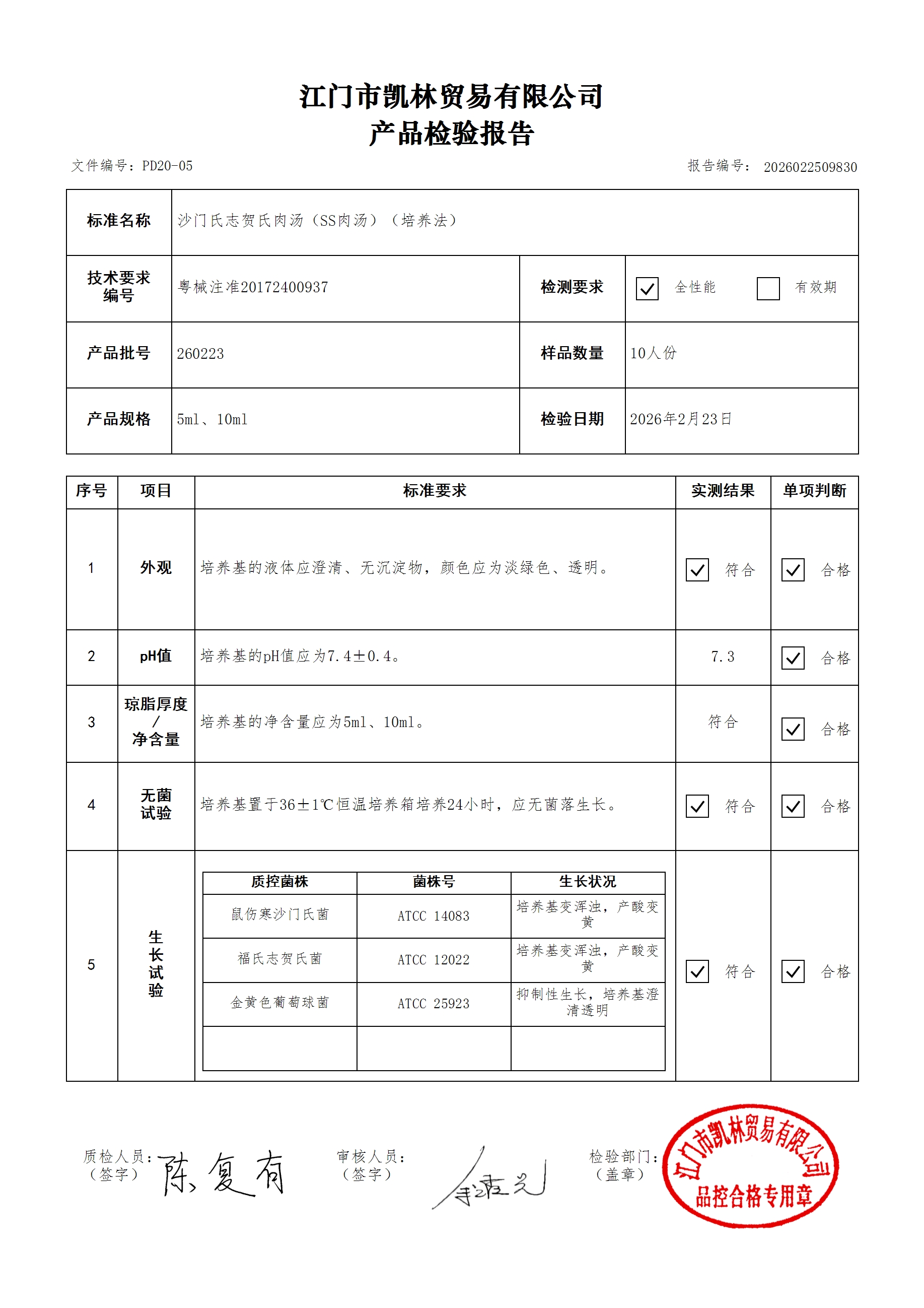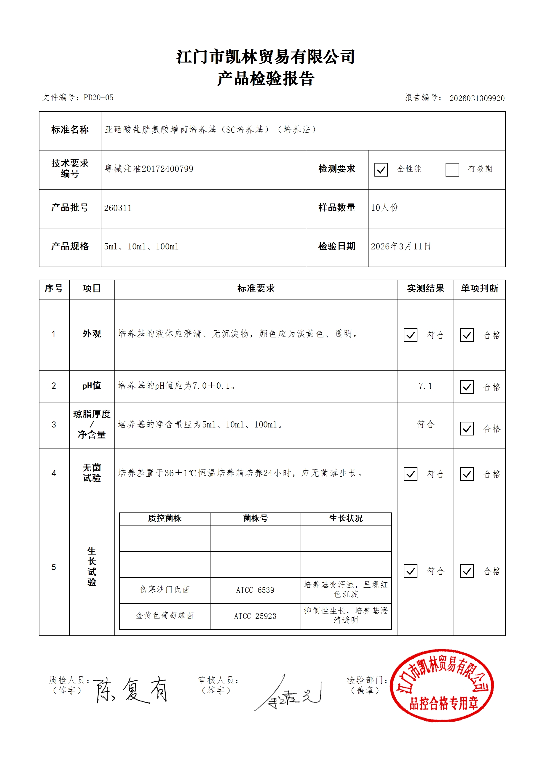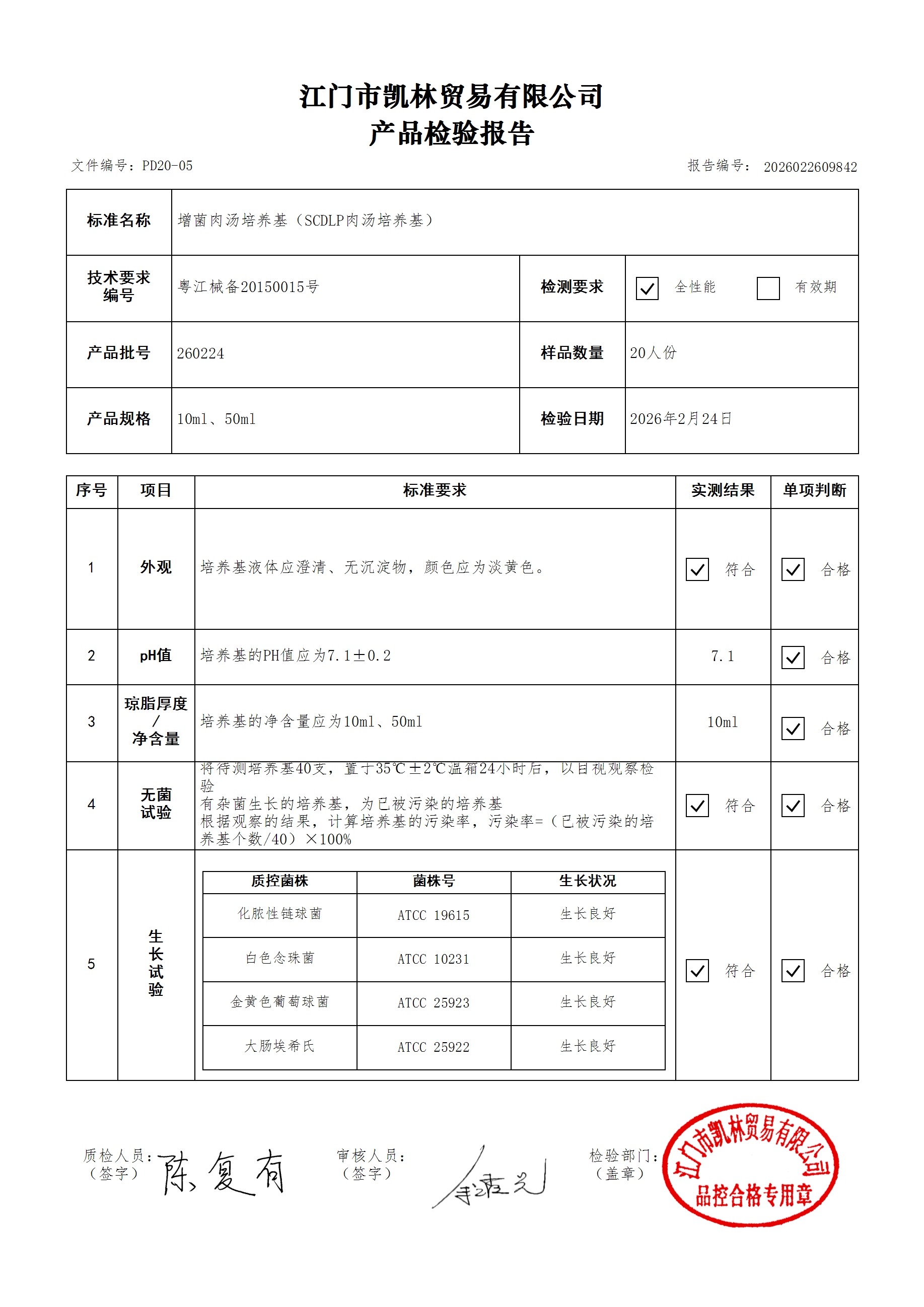 - 肉汤培养基(厌氧菌肉汤型) 260314 10ml 江门凯林 下载文件
