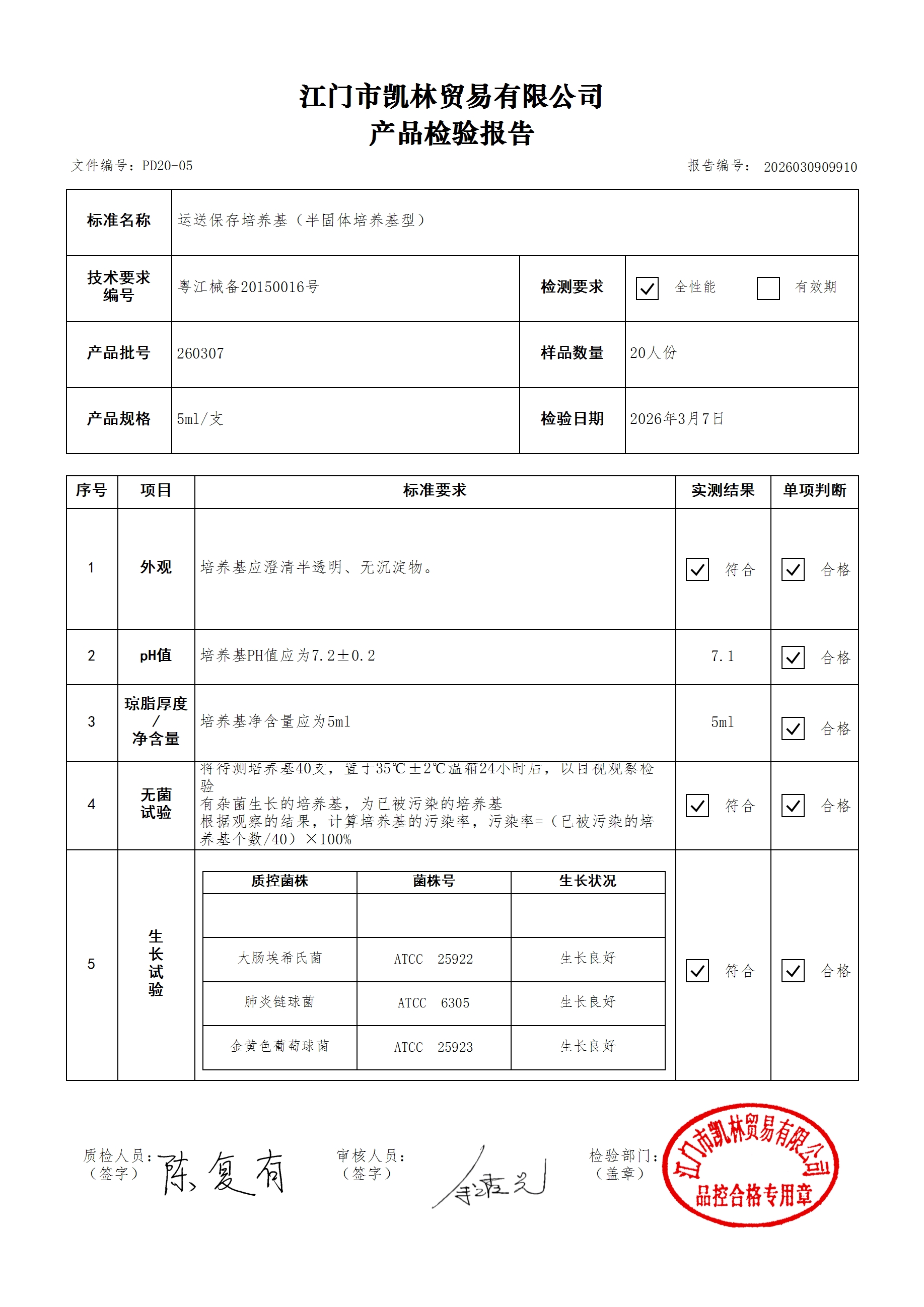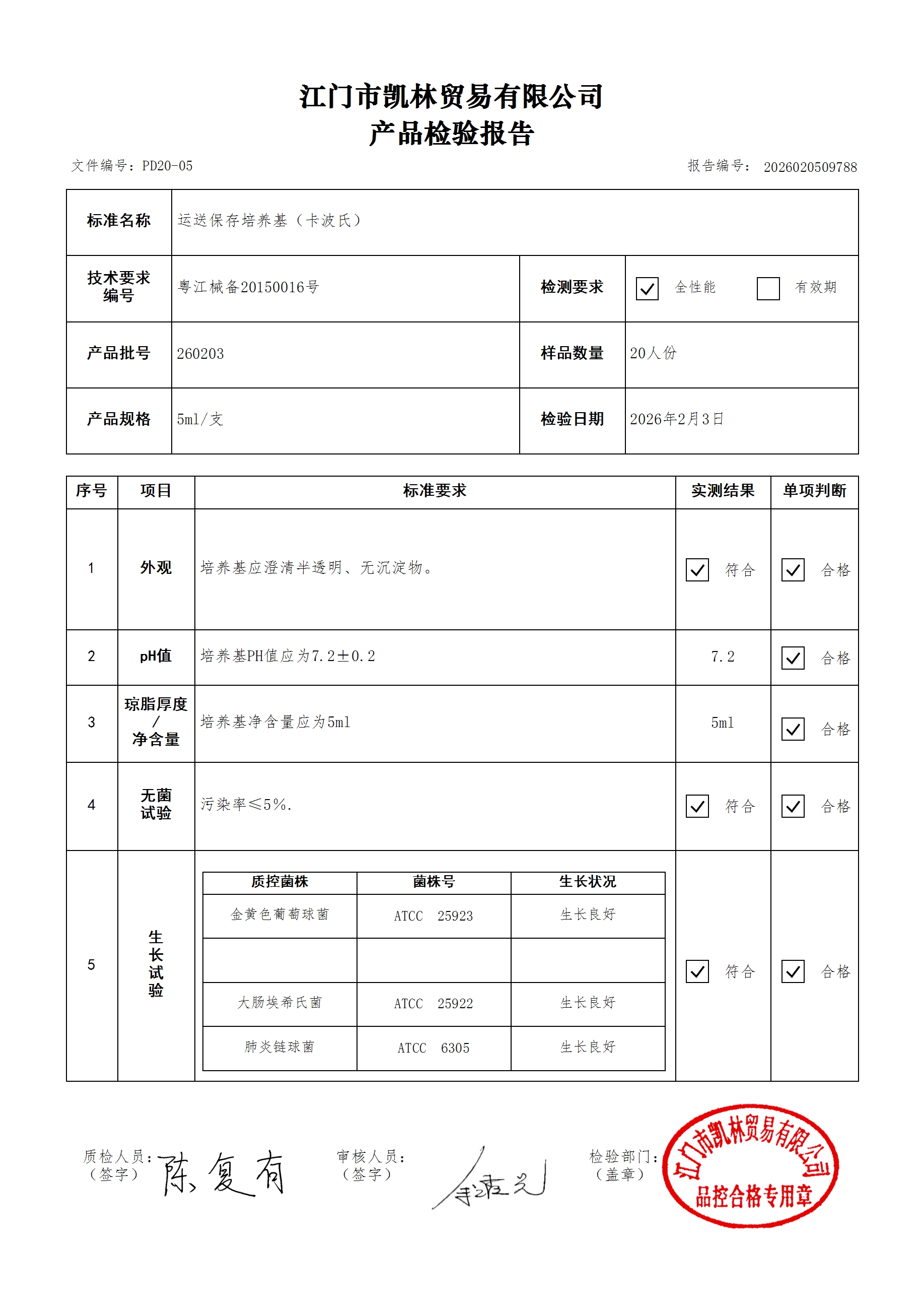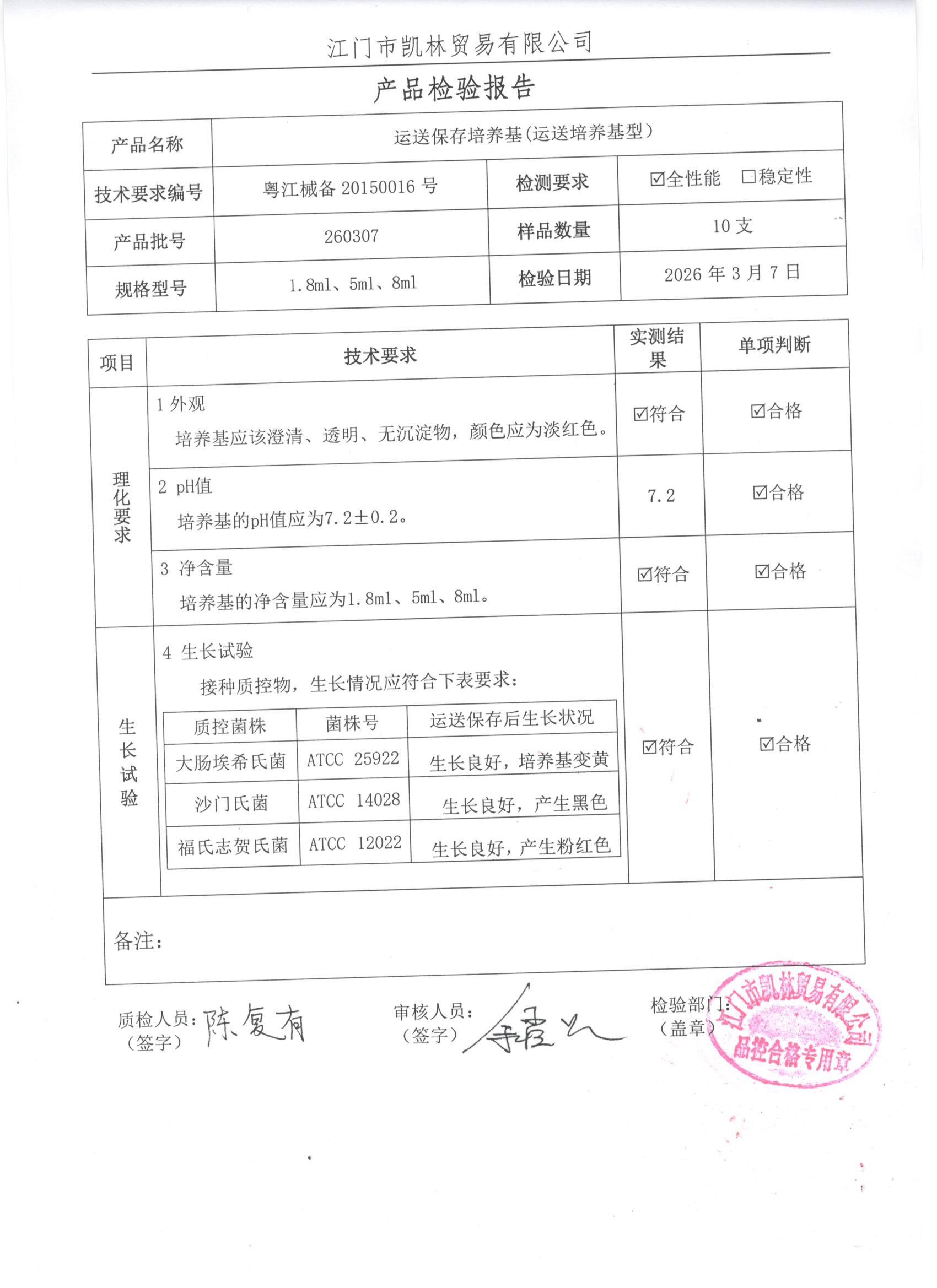 - 运送保存培养基(半固体培养基型) 260307 5ml 江门凯林 下载文件