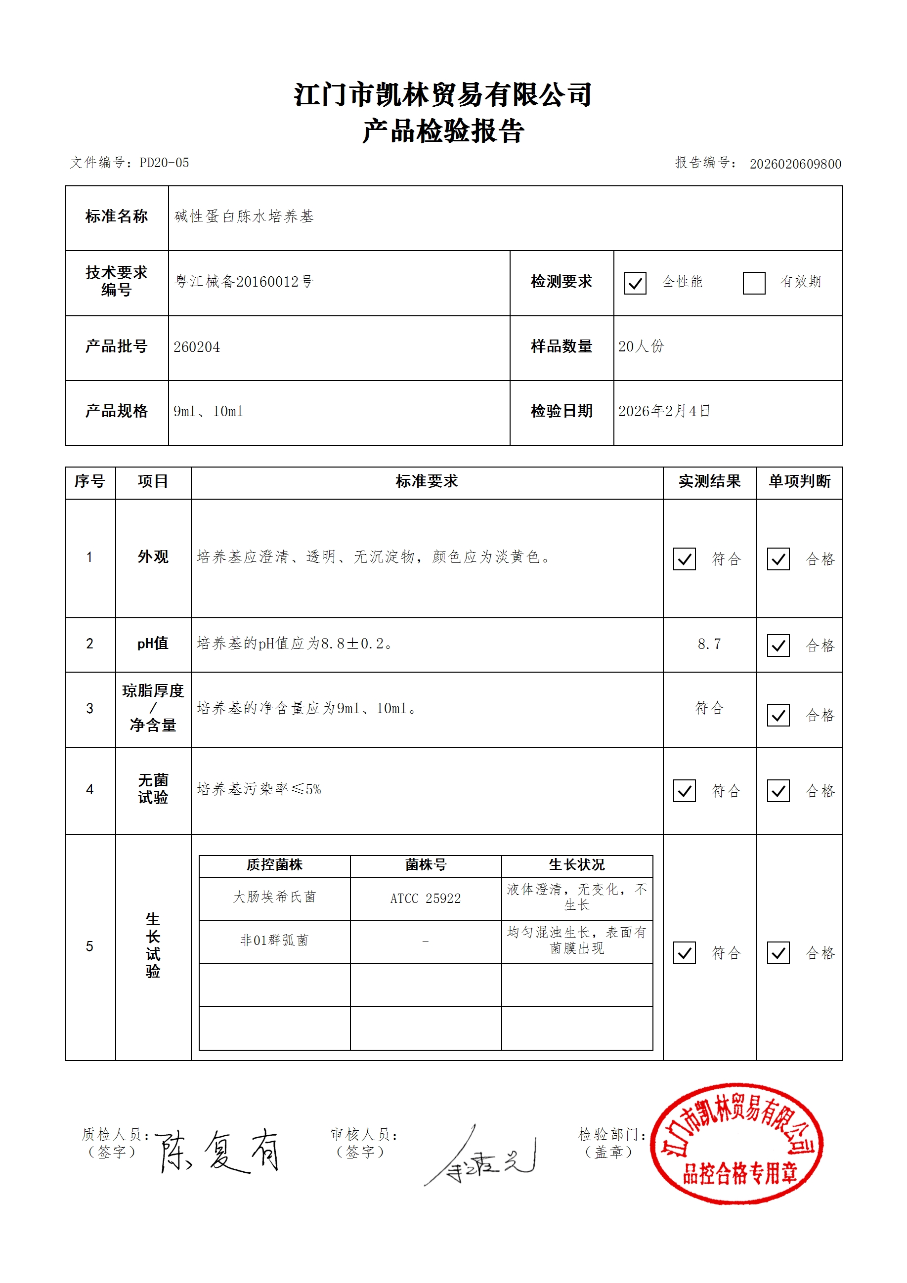 - 碱性蛋白胨水培养基 251108 9ml、10ml 江门凯林 下载文件