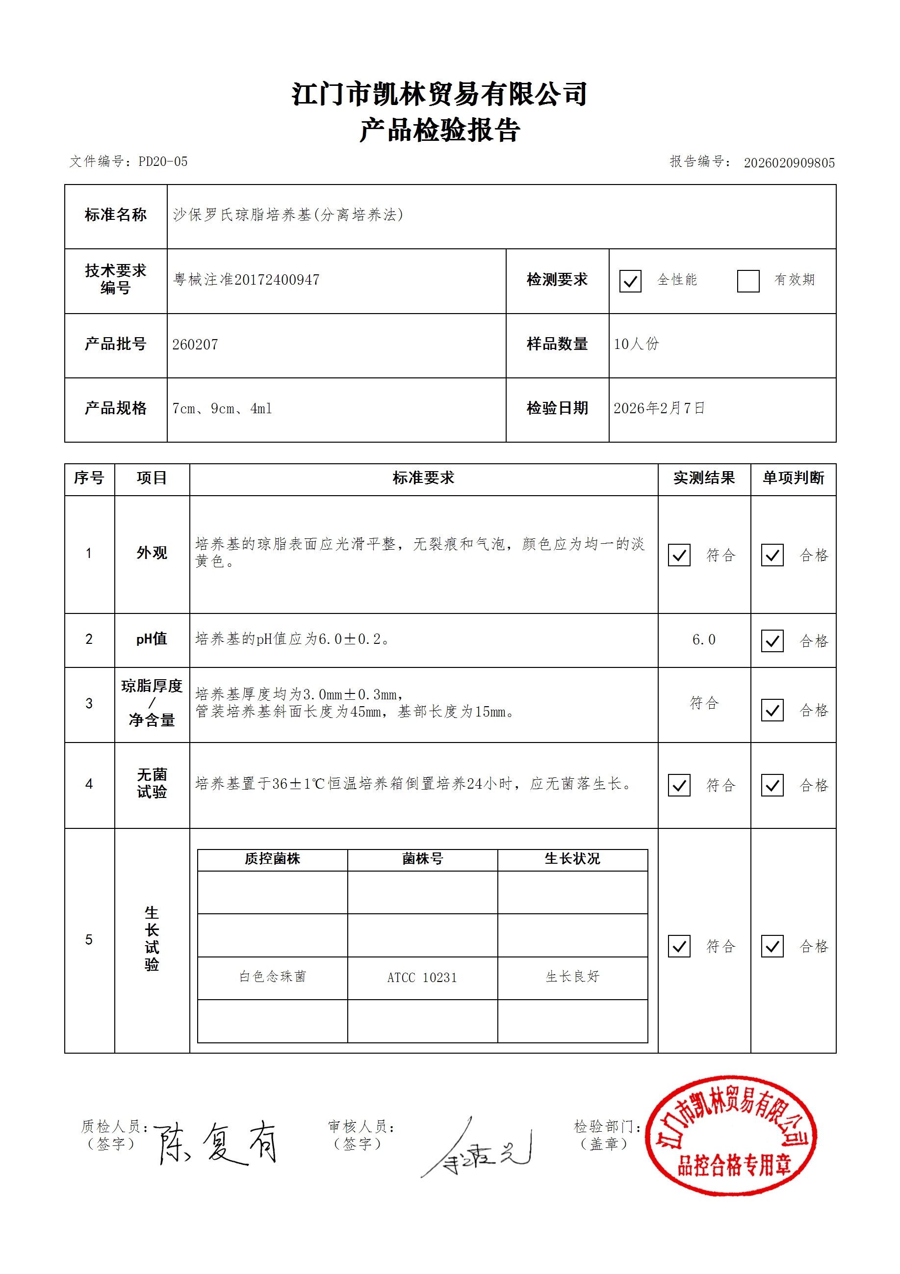 - 沙保罗氏琼脂培养基 251025 7cm、9cm、4ml 江门凯林 下载文件
