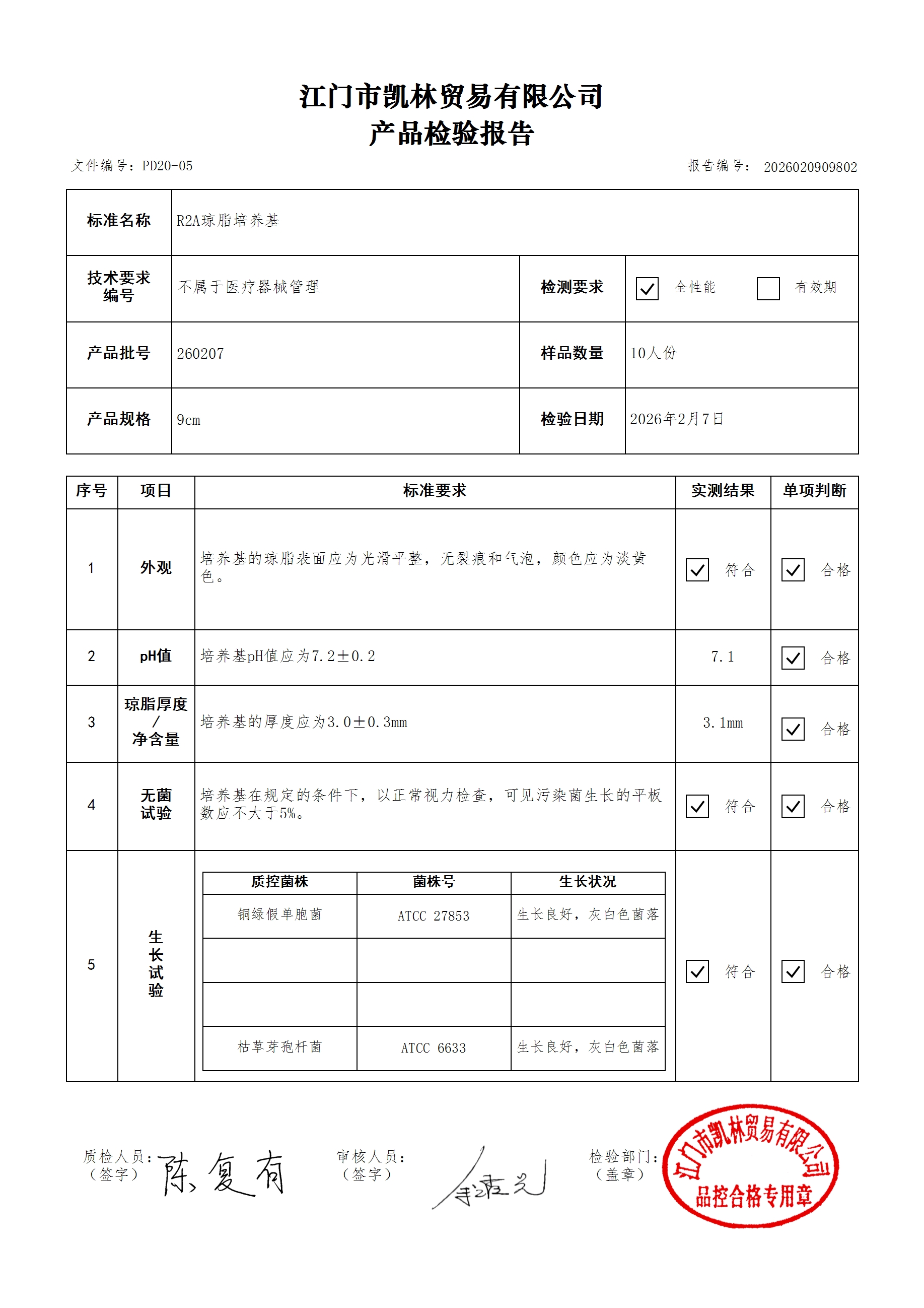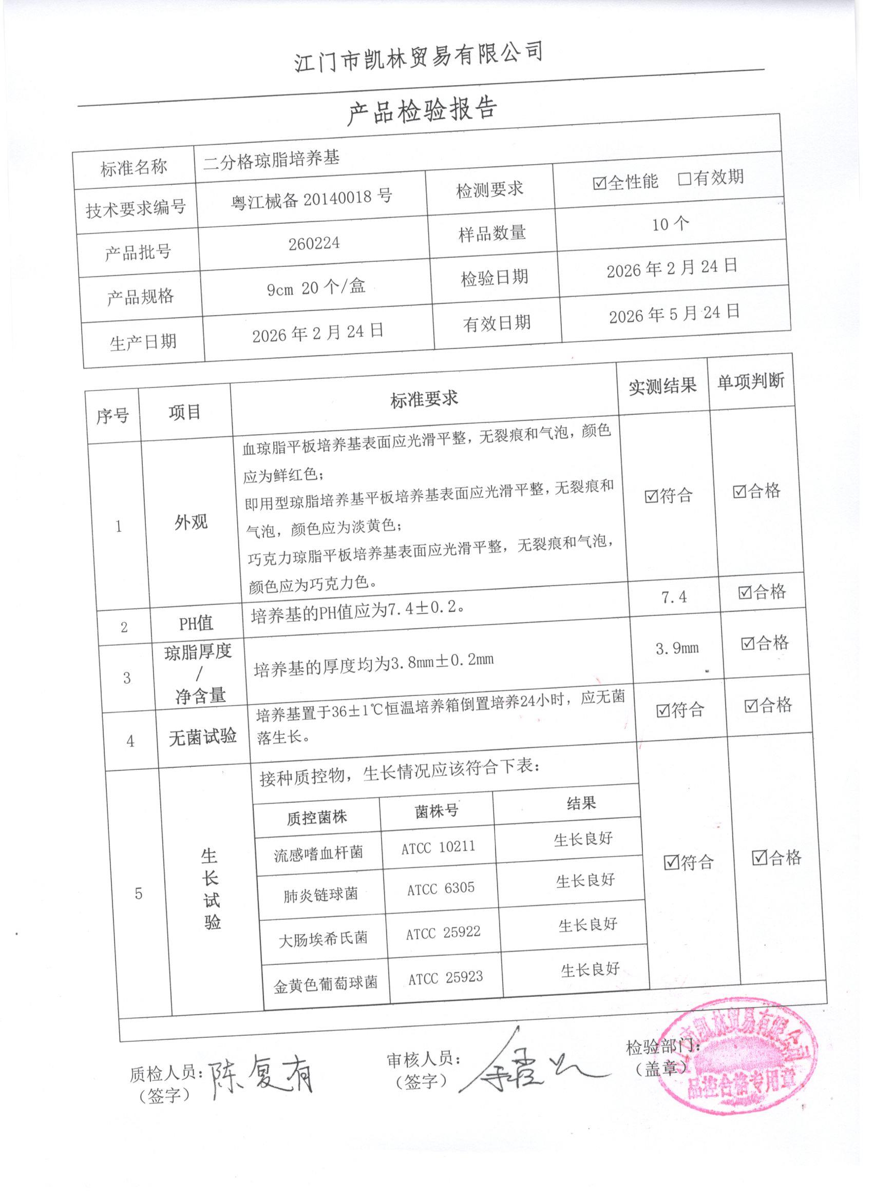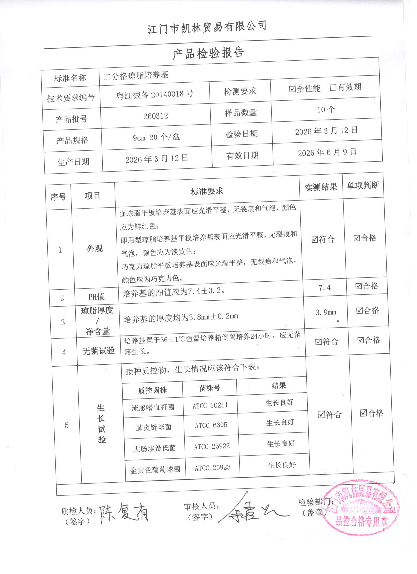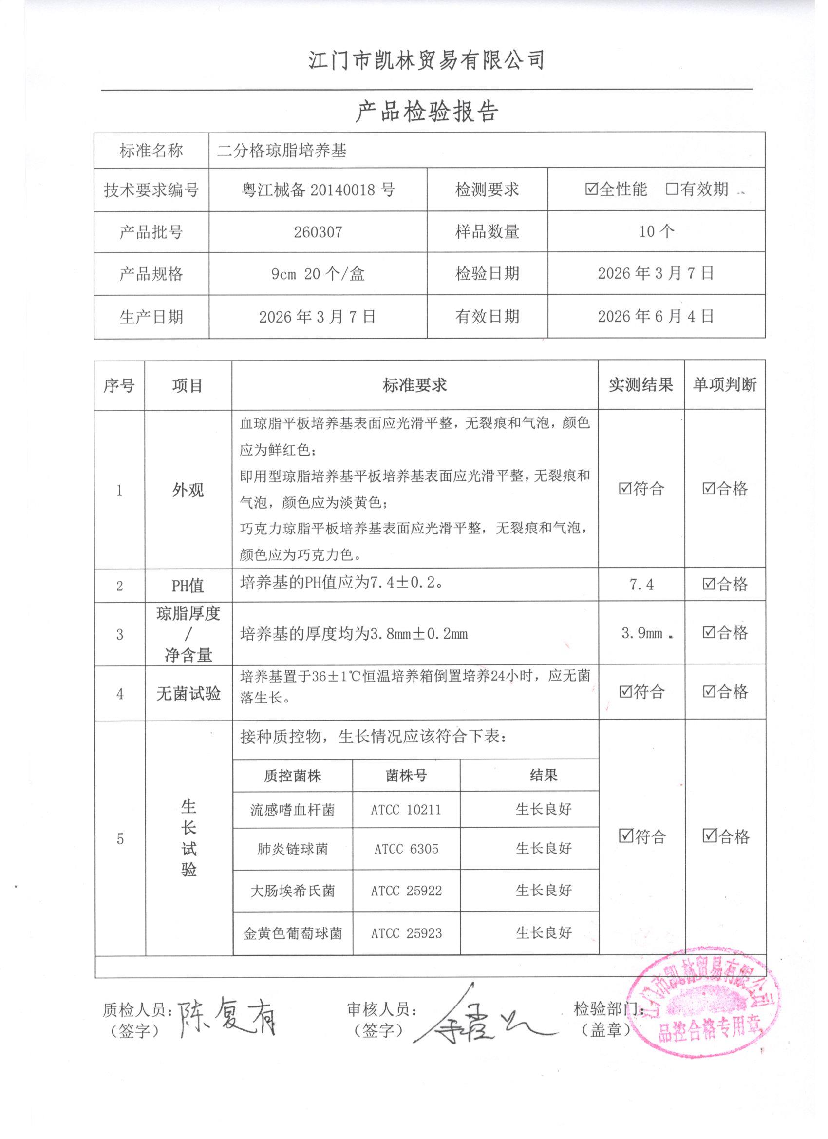 - 二分格琼脂培养基 260307 9cm 江门凯林 下载文件