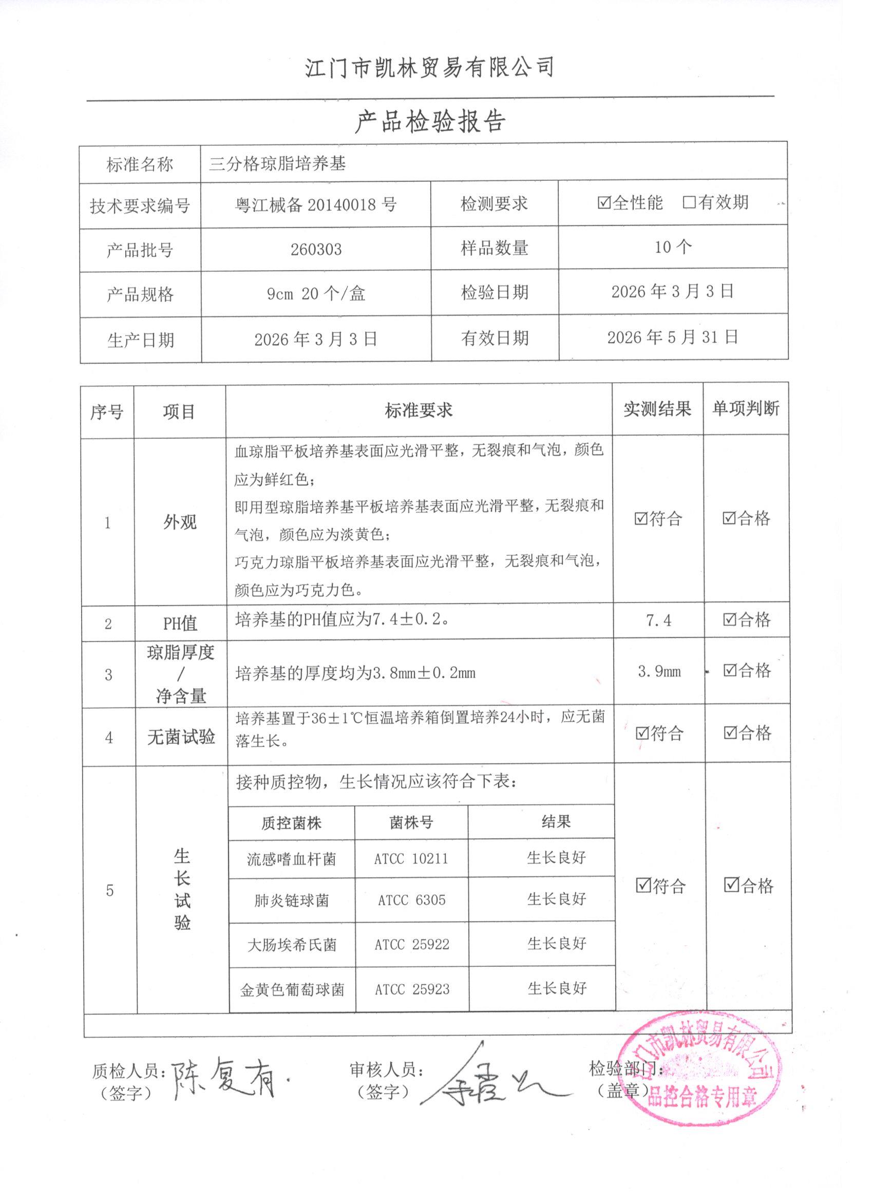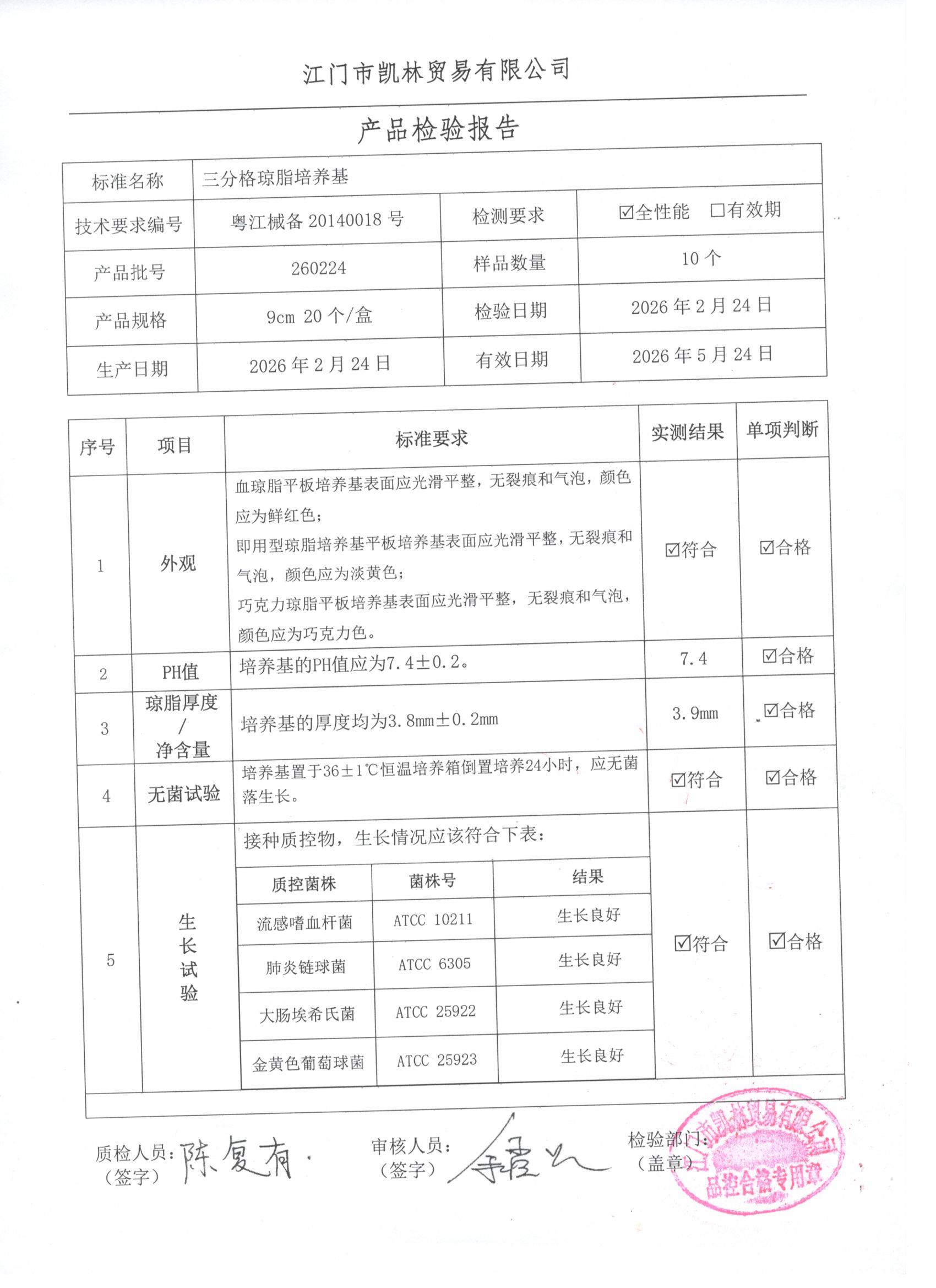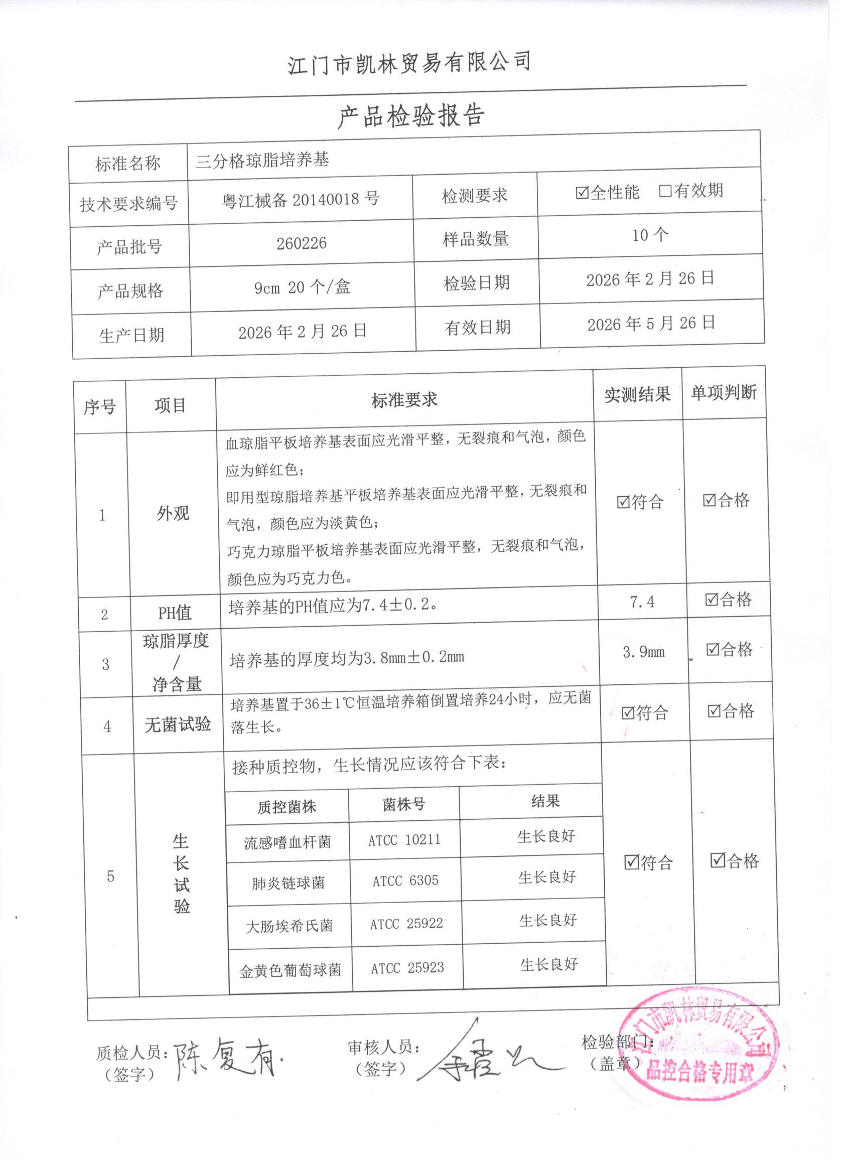 - 三分格琼脂培养基 260307 9cm 江门凯林 下载文件