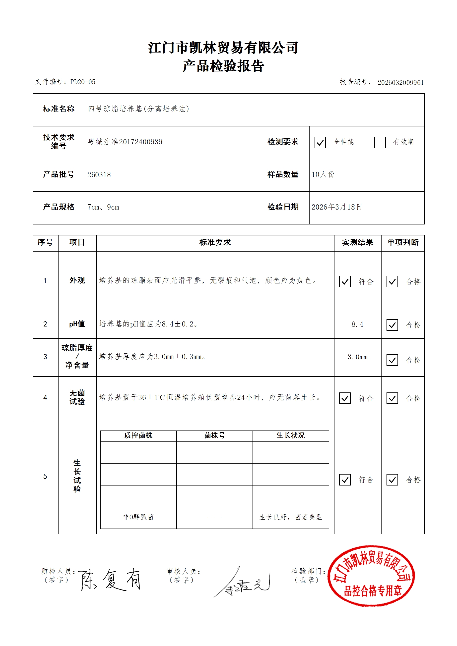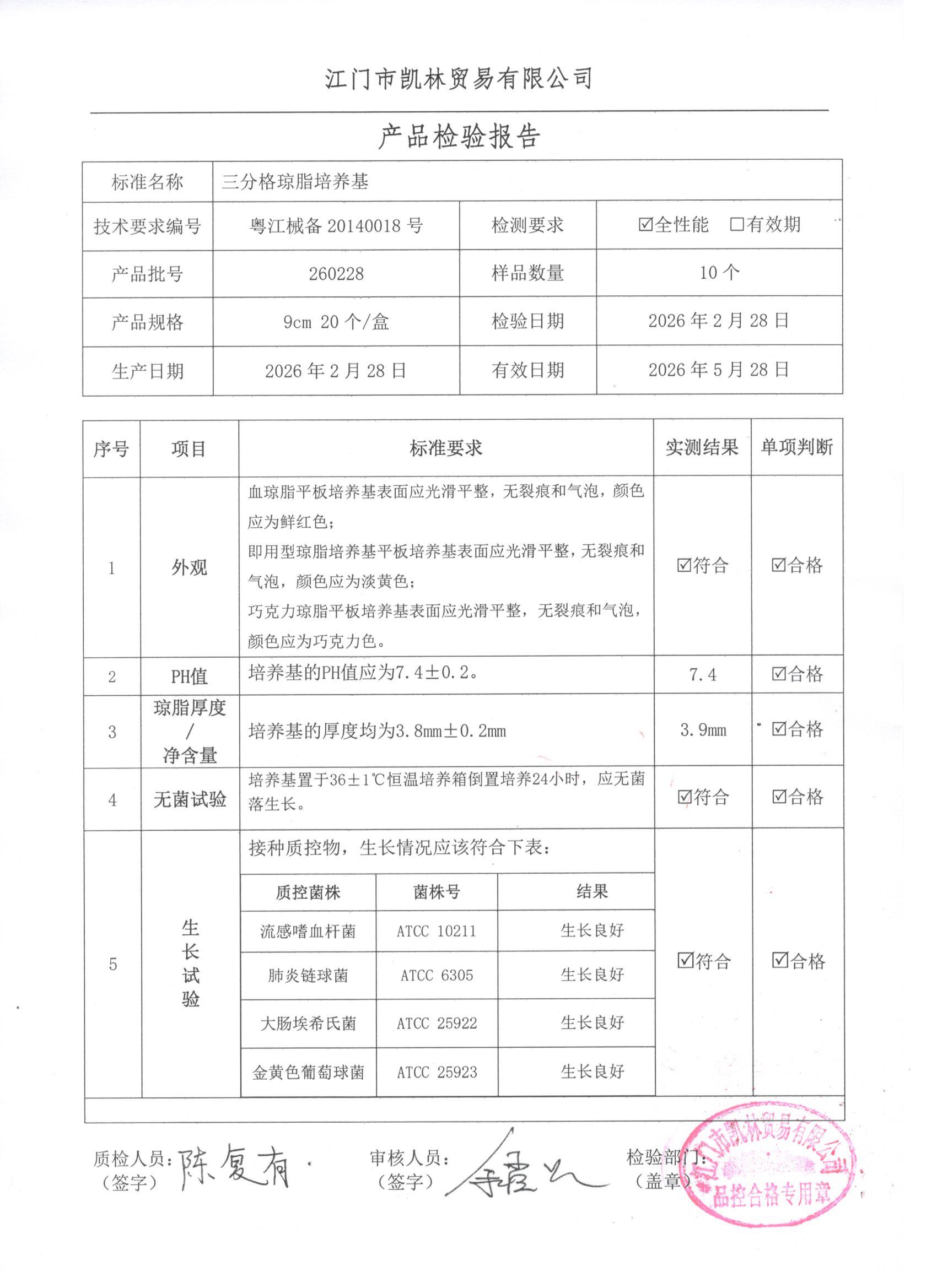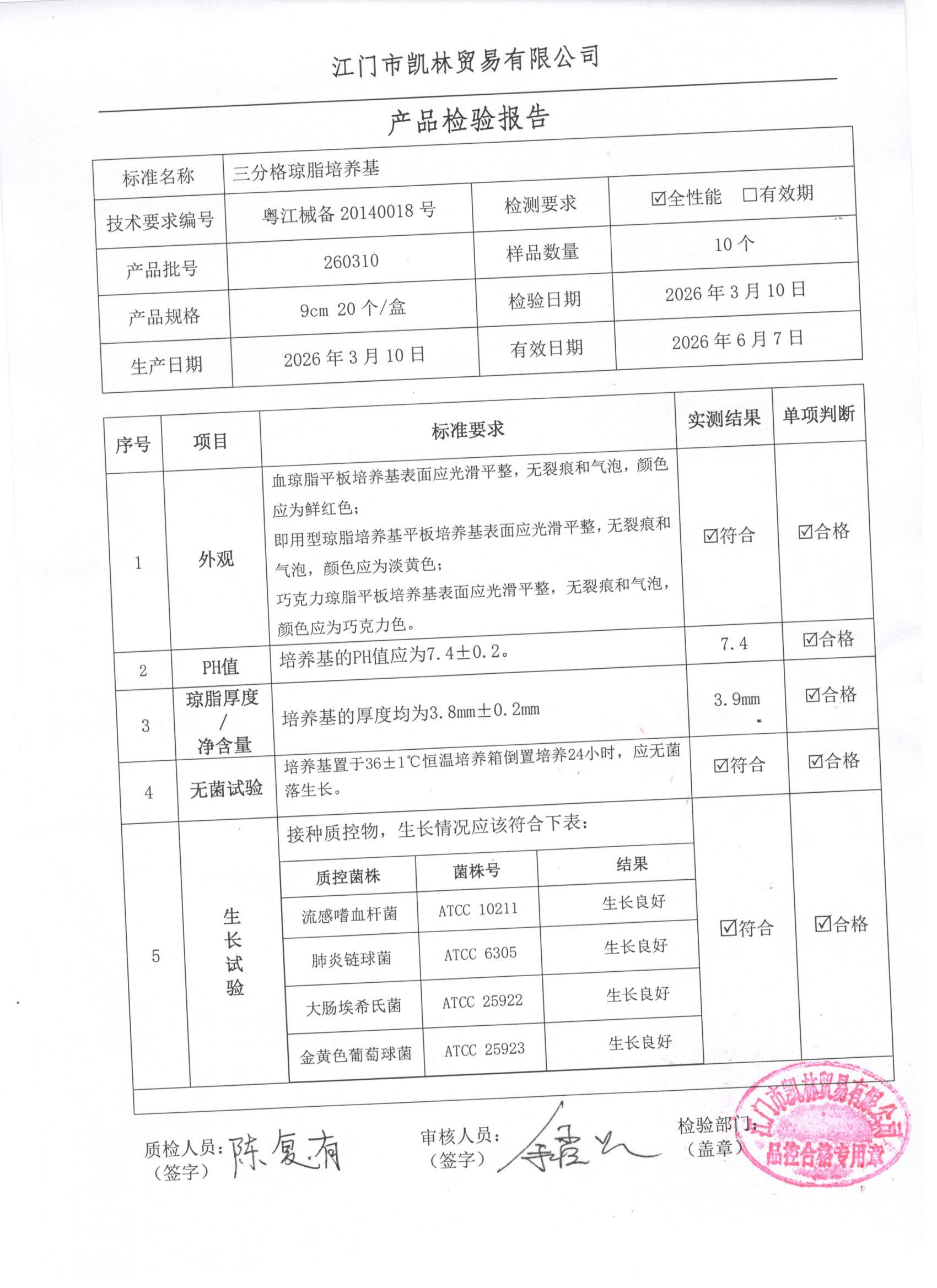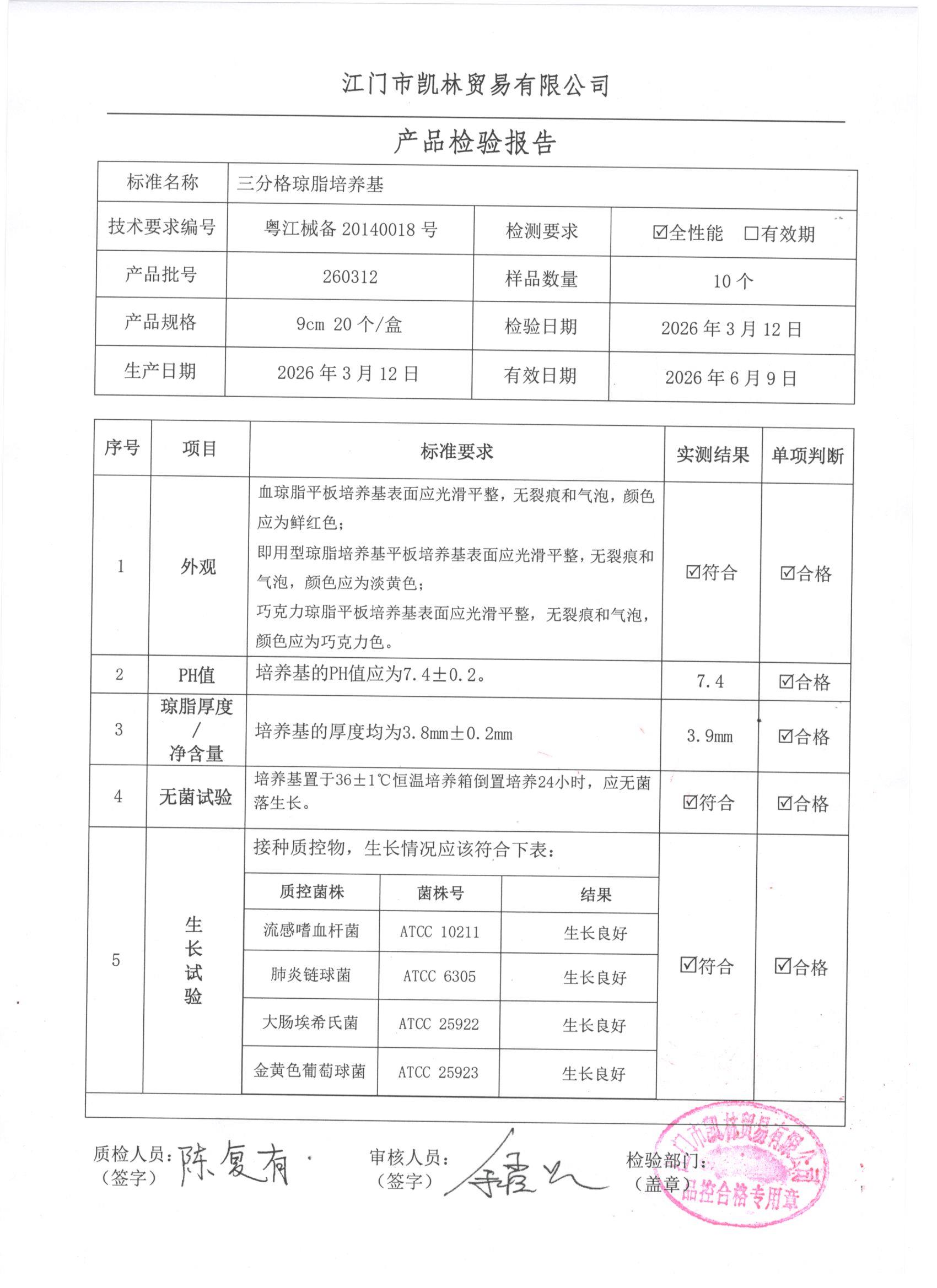 - 三分格琼脂培养基 260307 9cm 江门凯林 下载文件