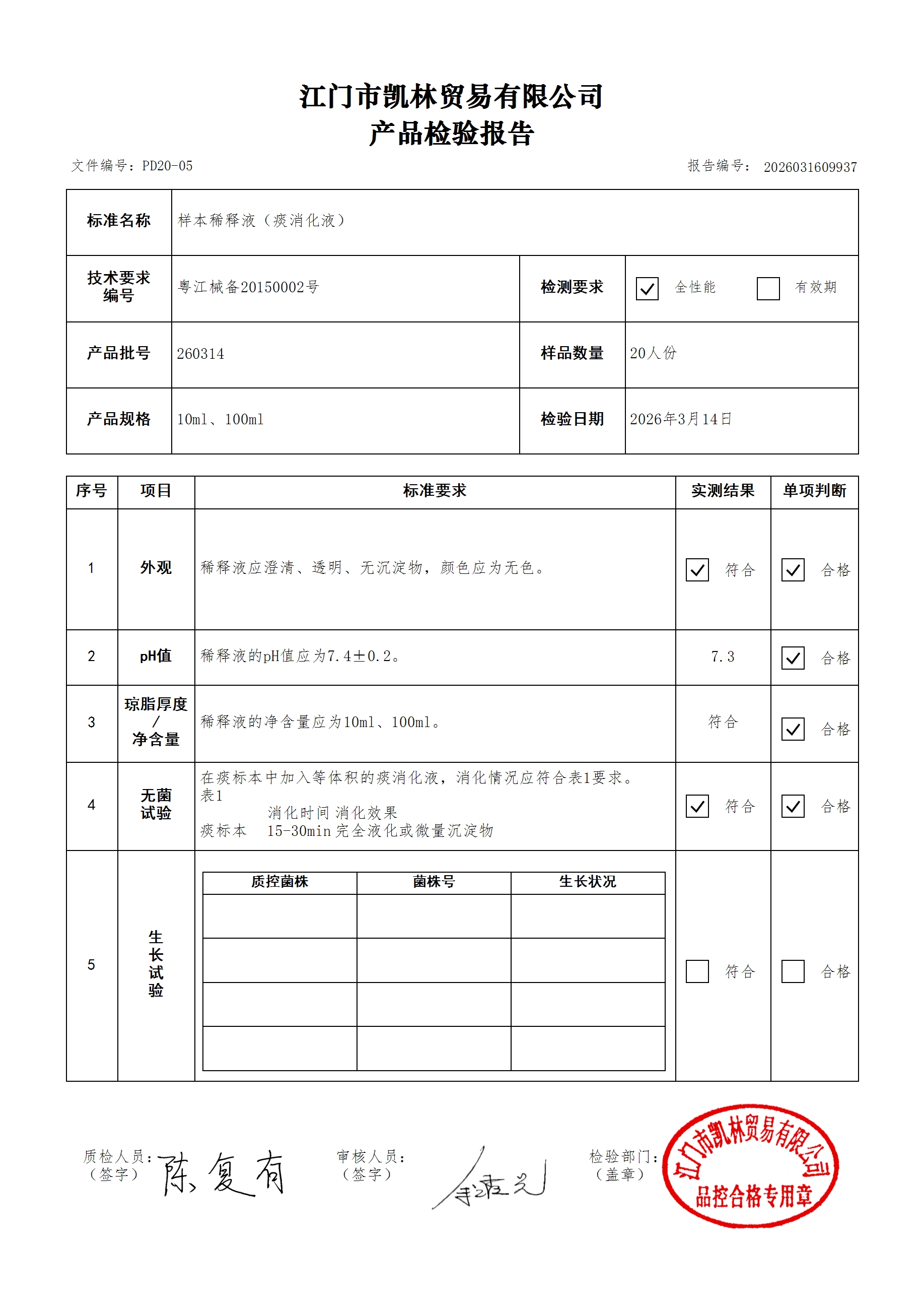 - 样本稀释液(痰消化液) 260314 10ml、100ml 江门凯林 下载文件