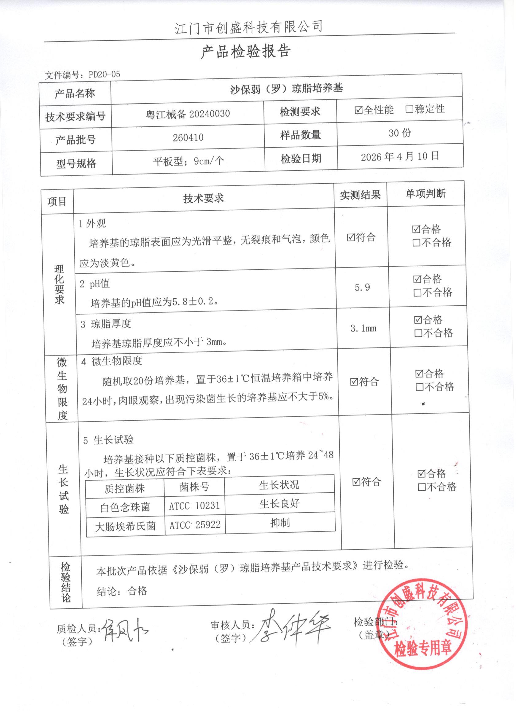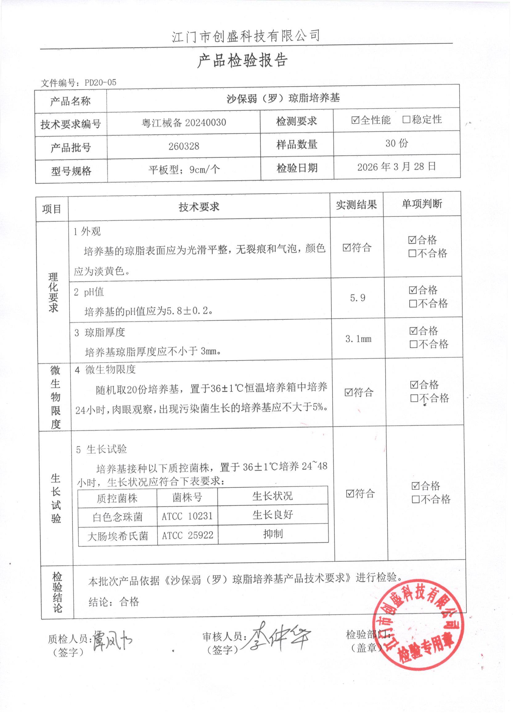 - 沙保弱(罗)琼脂培养基 260328 9cm 江门创盛 下载文件