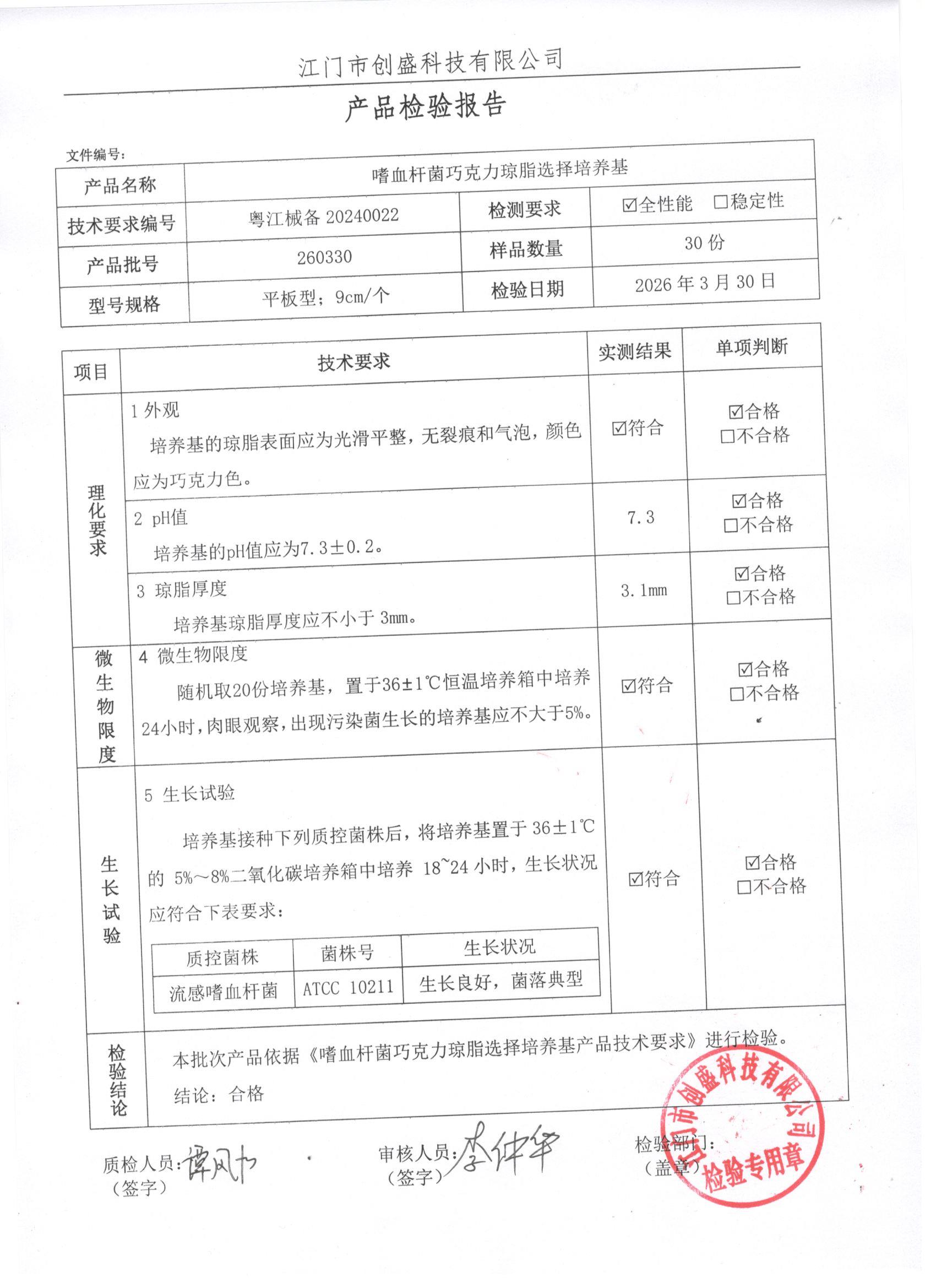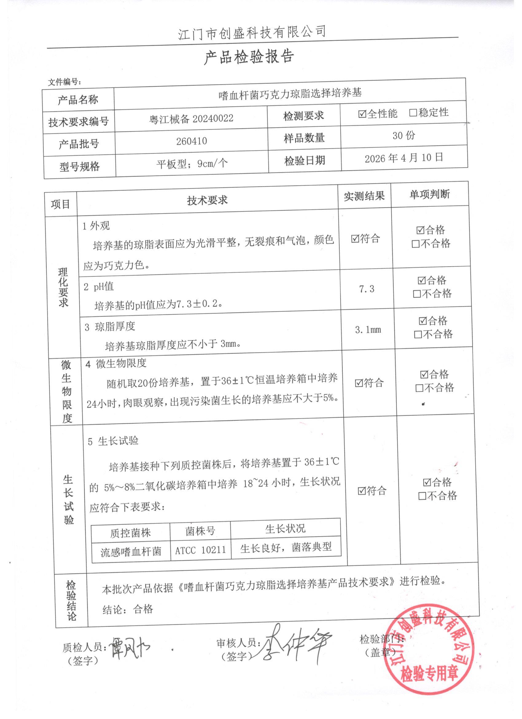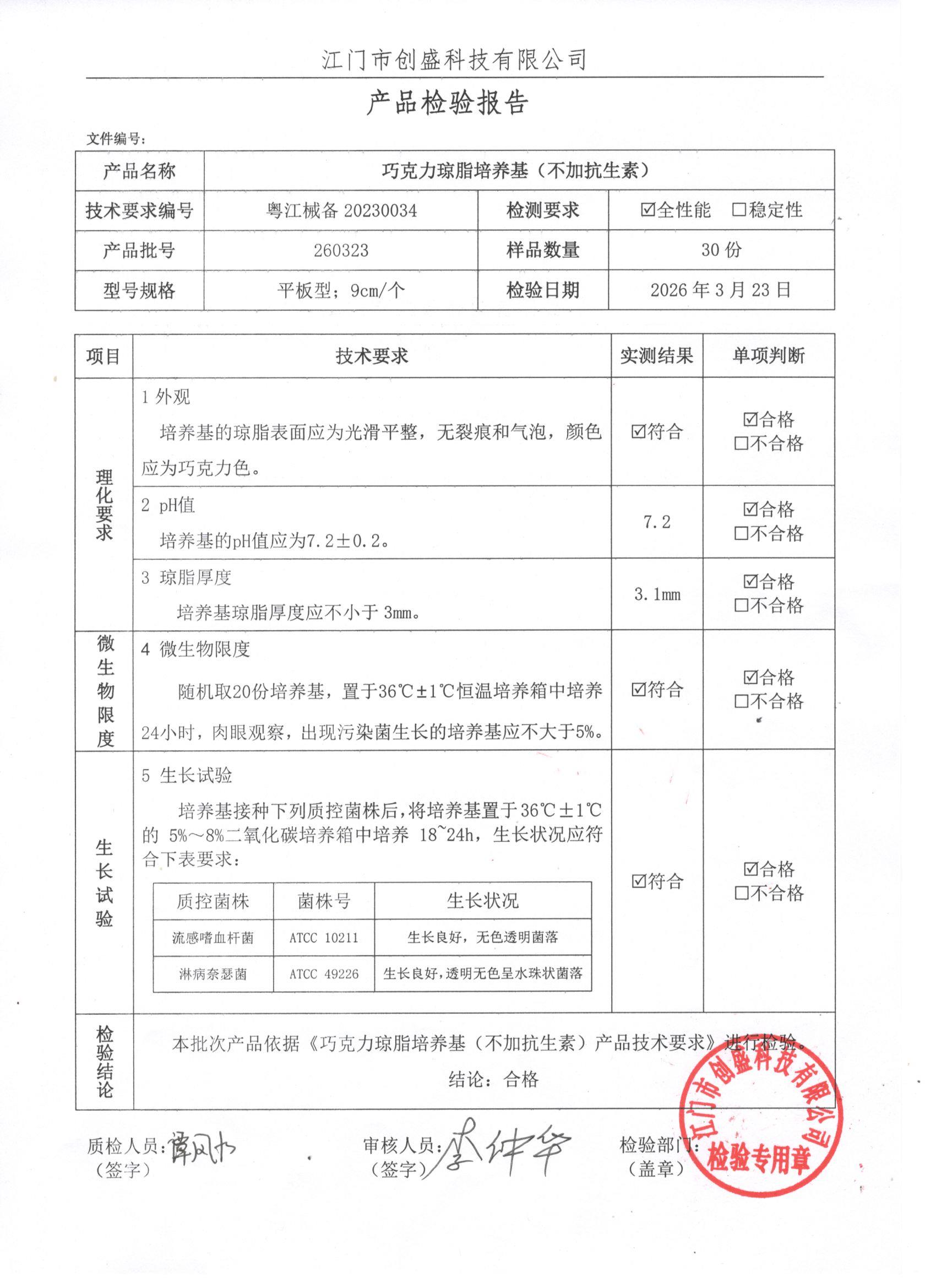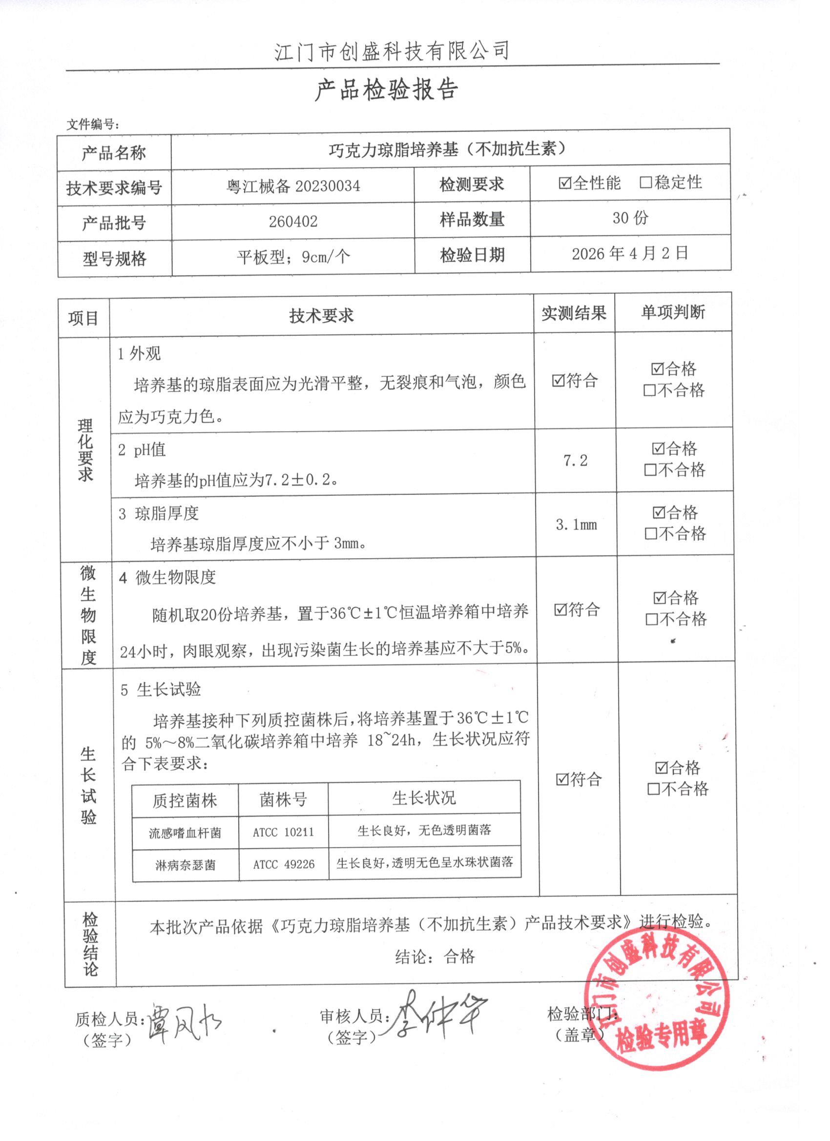 - 巧克力琼脂培养基(不加抗生素) 260323 9cm 江门创盛 下载文件