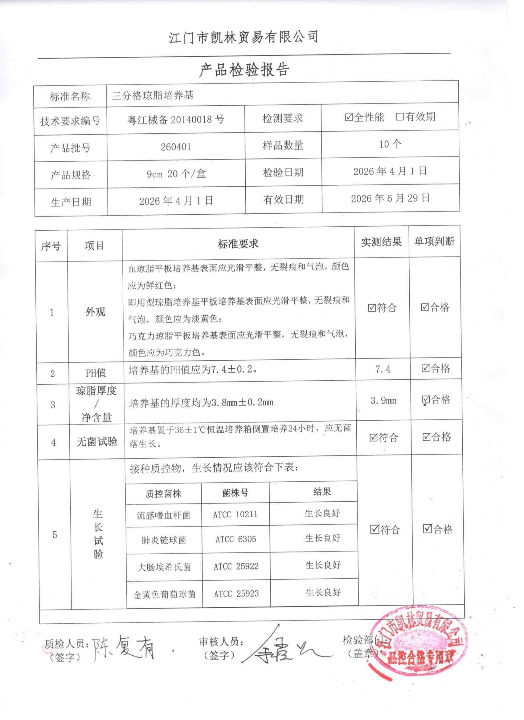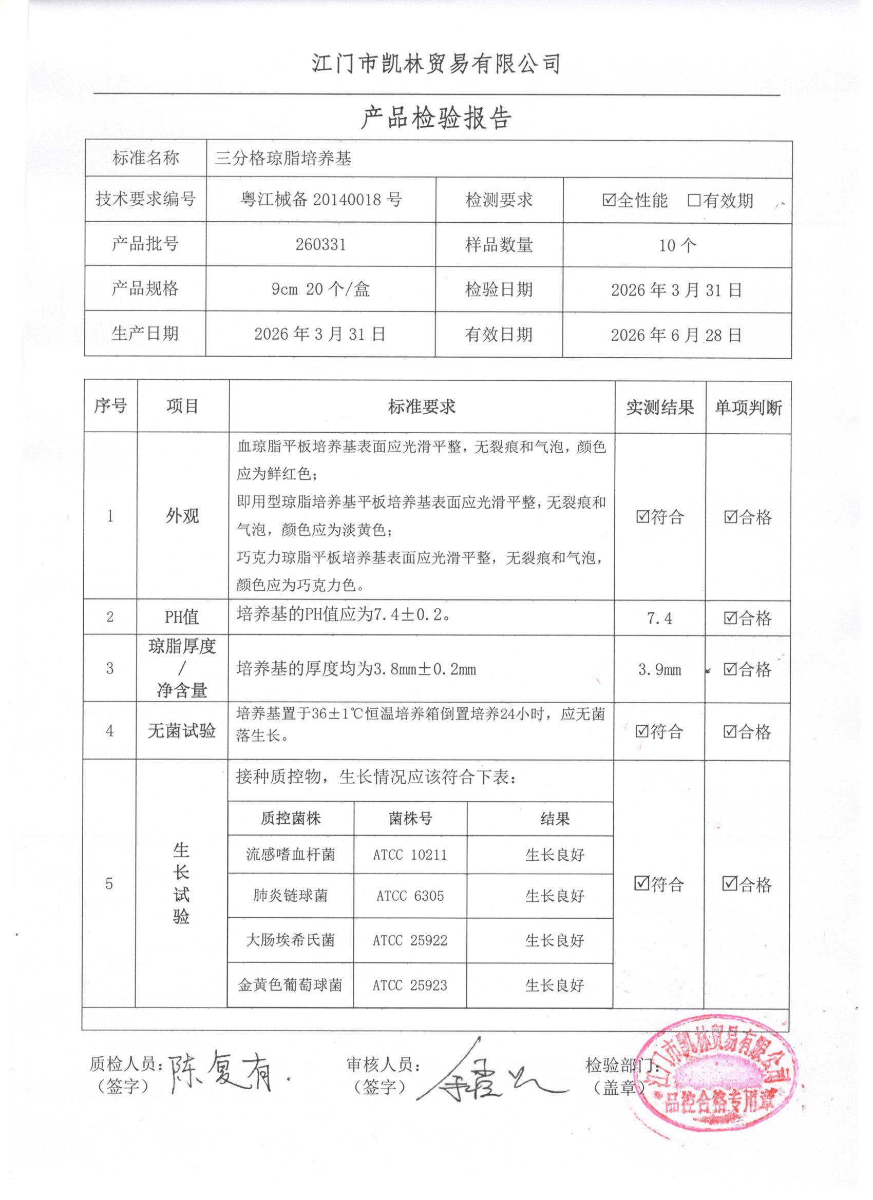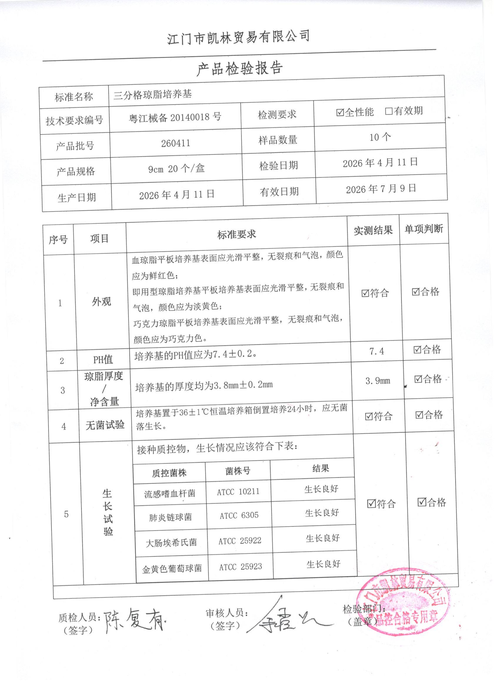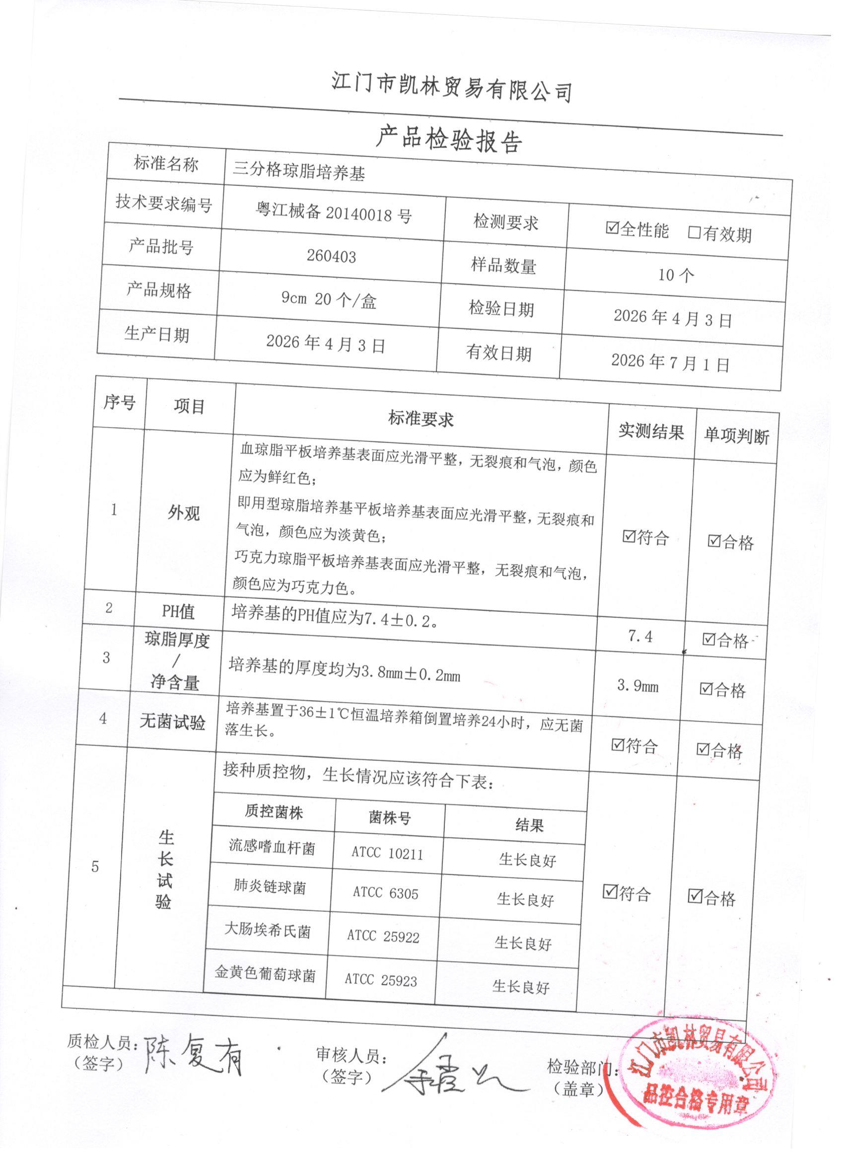 - 三分格琼脂培养基 260403 9cm 江门凯林 下载文件