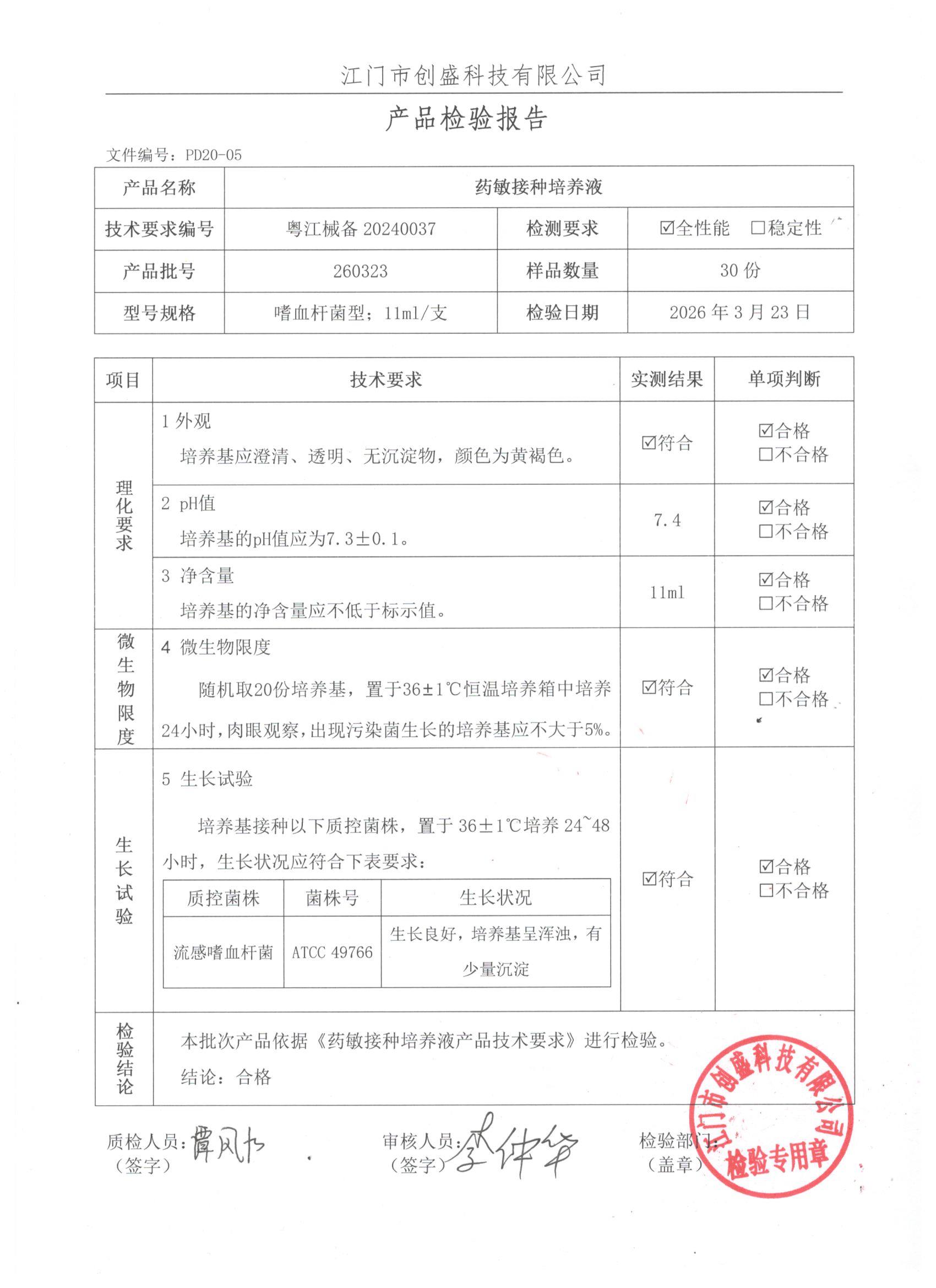 - 药敏接种培养液(嗜血杆菌型) 260323 11ml 江门创盛 下载文件