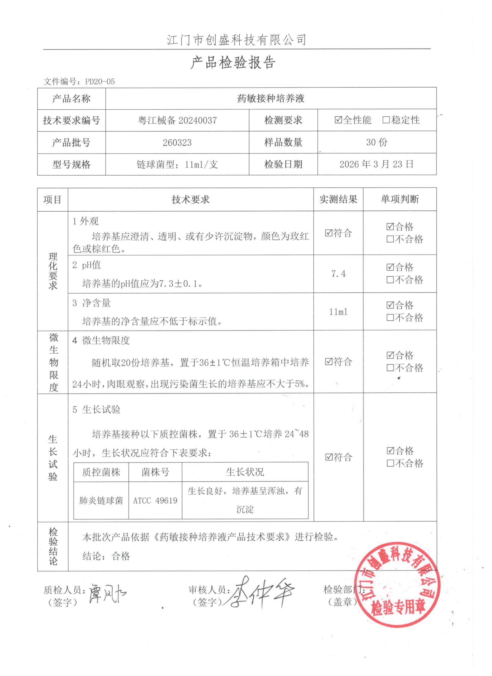 - 药敏接种培养液(链球菌型) 260323 11ml 江门创盛 下载文件