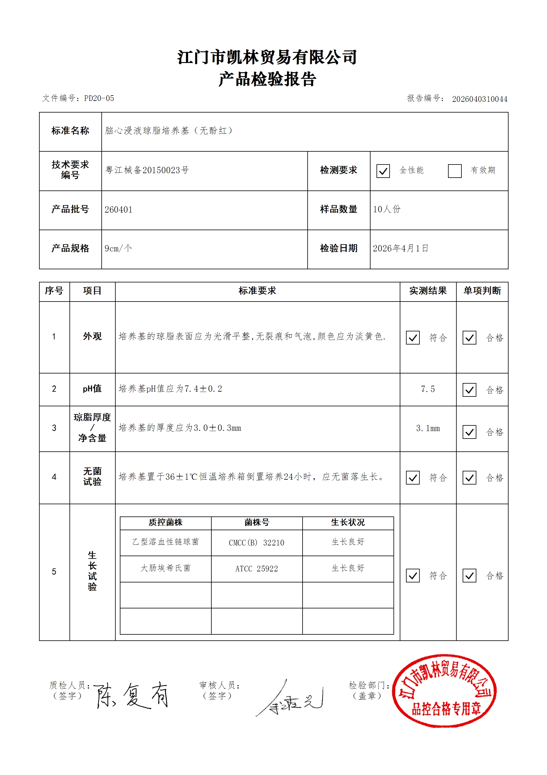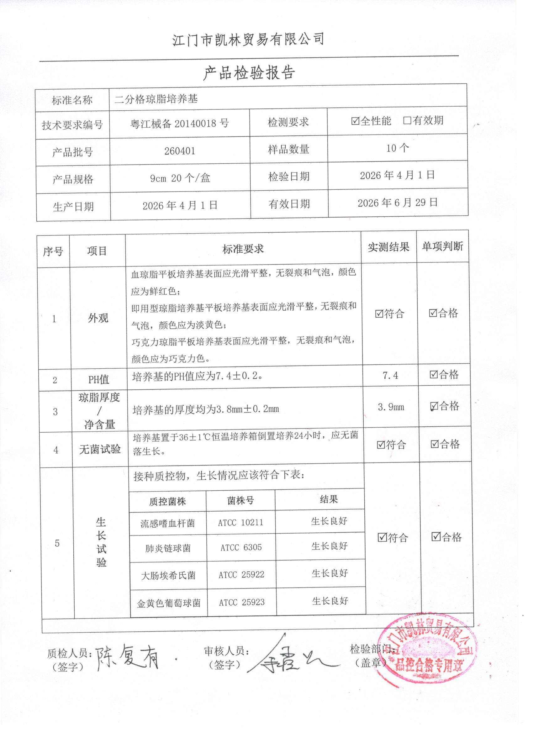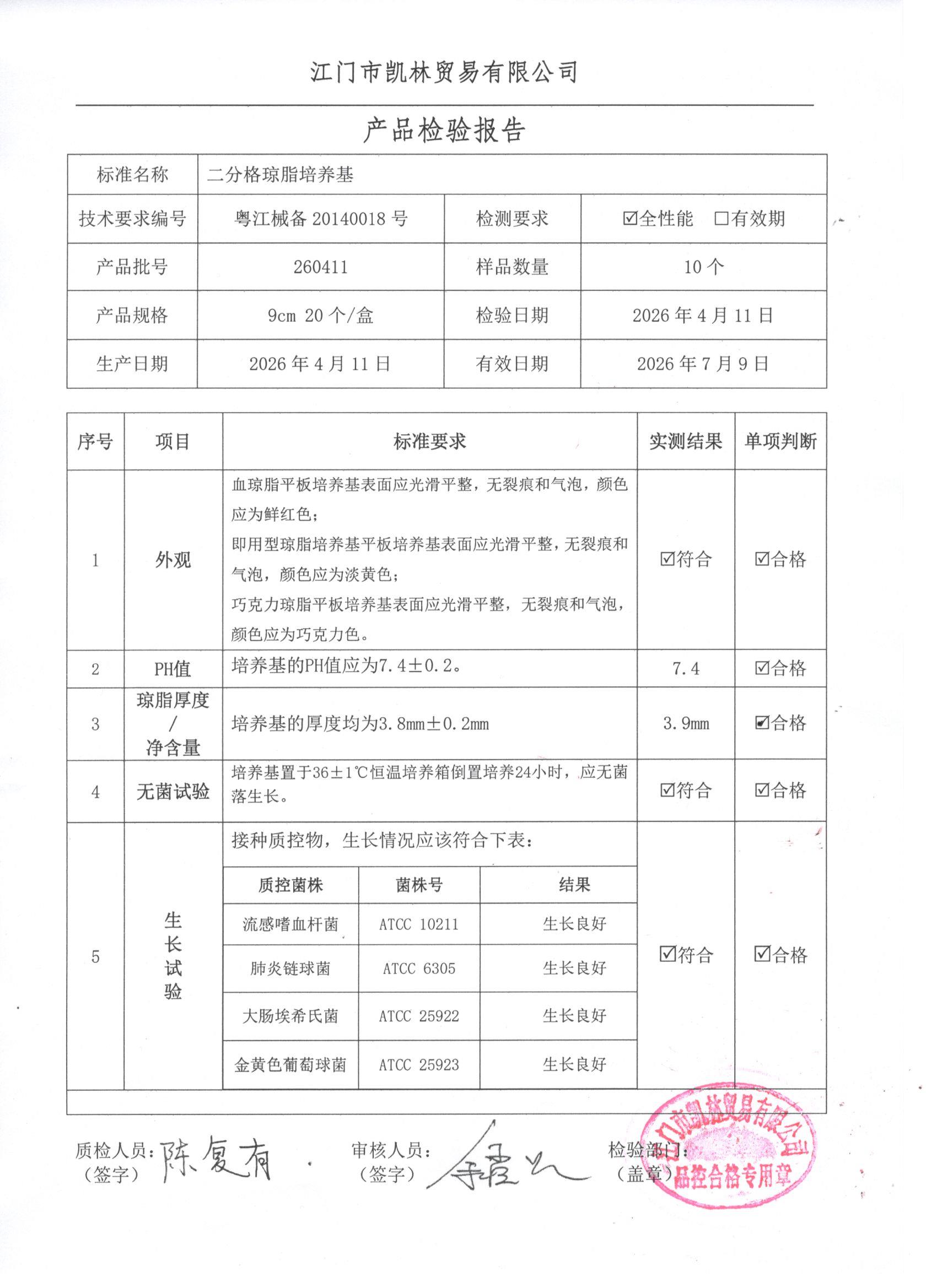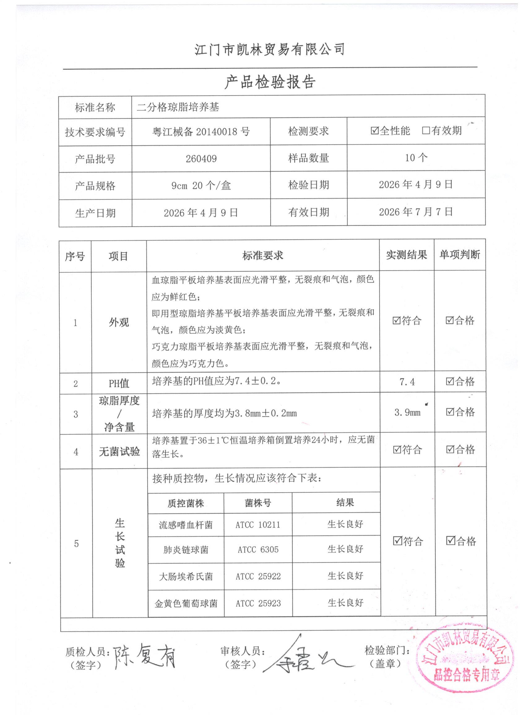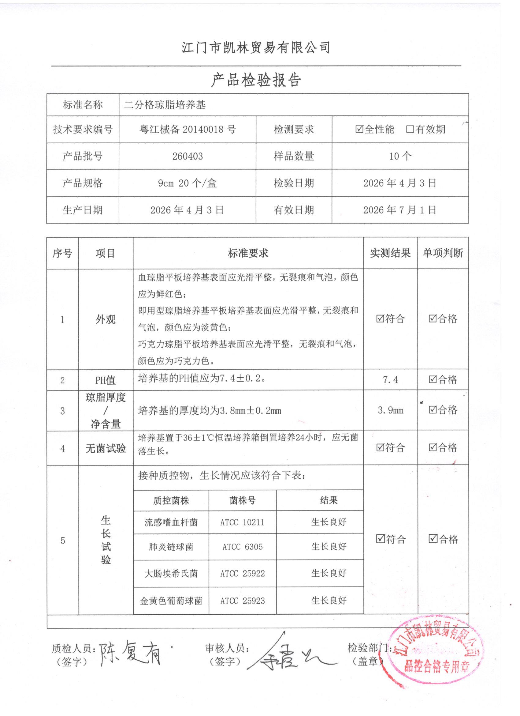- 二分格琼脂培养基 260401 9cm 江门凯林 下载文件