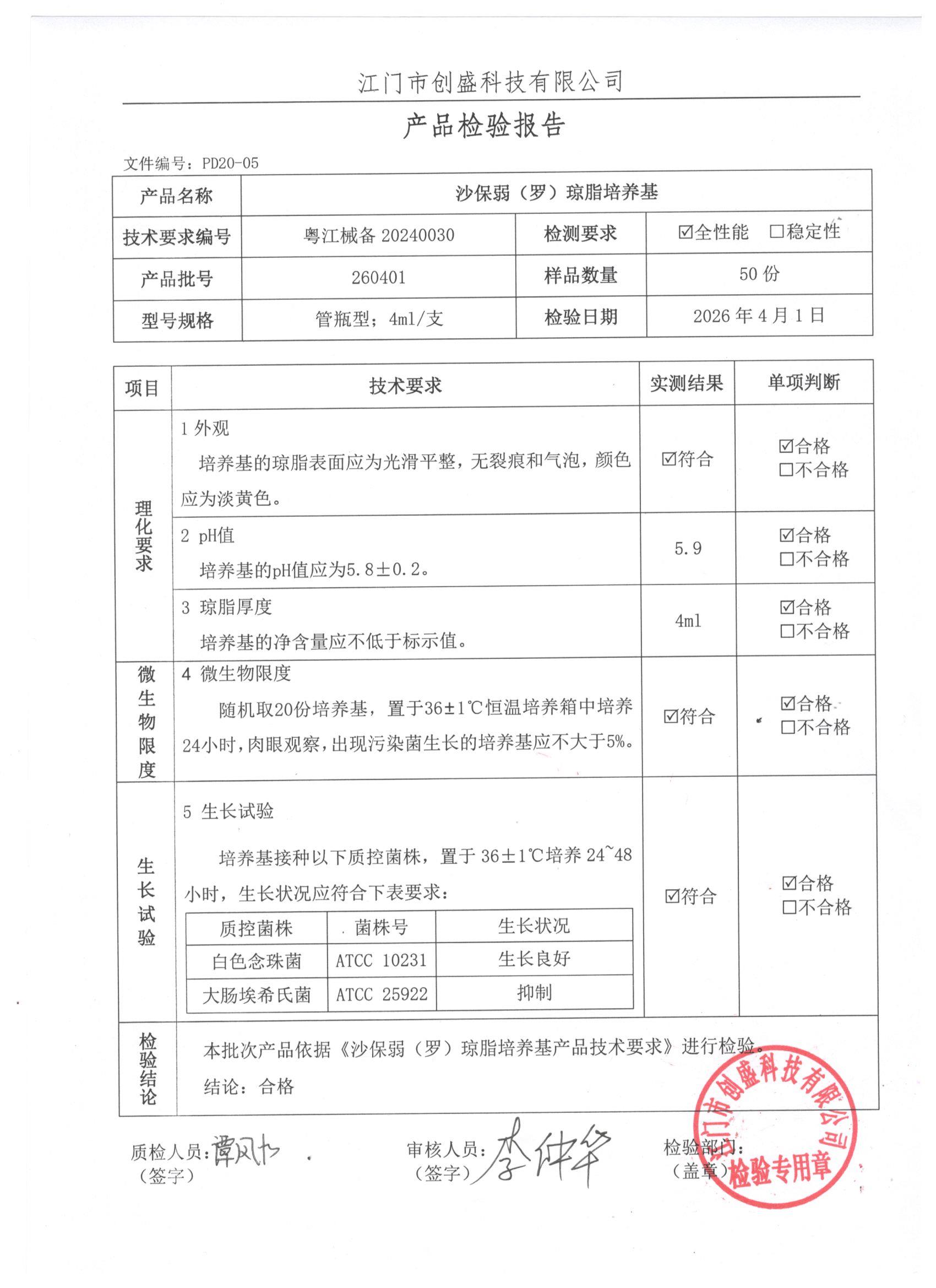 - 沙保弱(罗)琼脂培养基 260401 4ml 江门创盛 下载文件