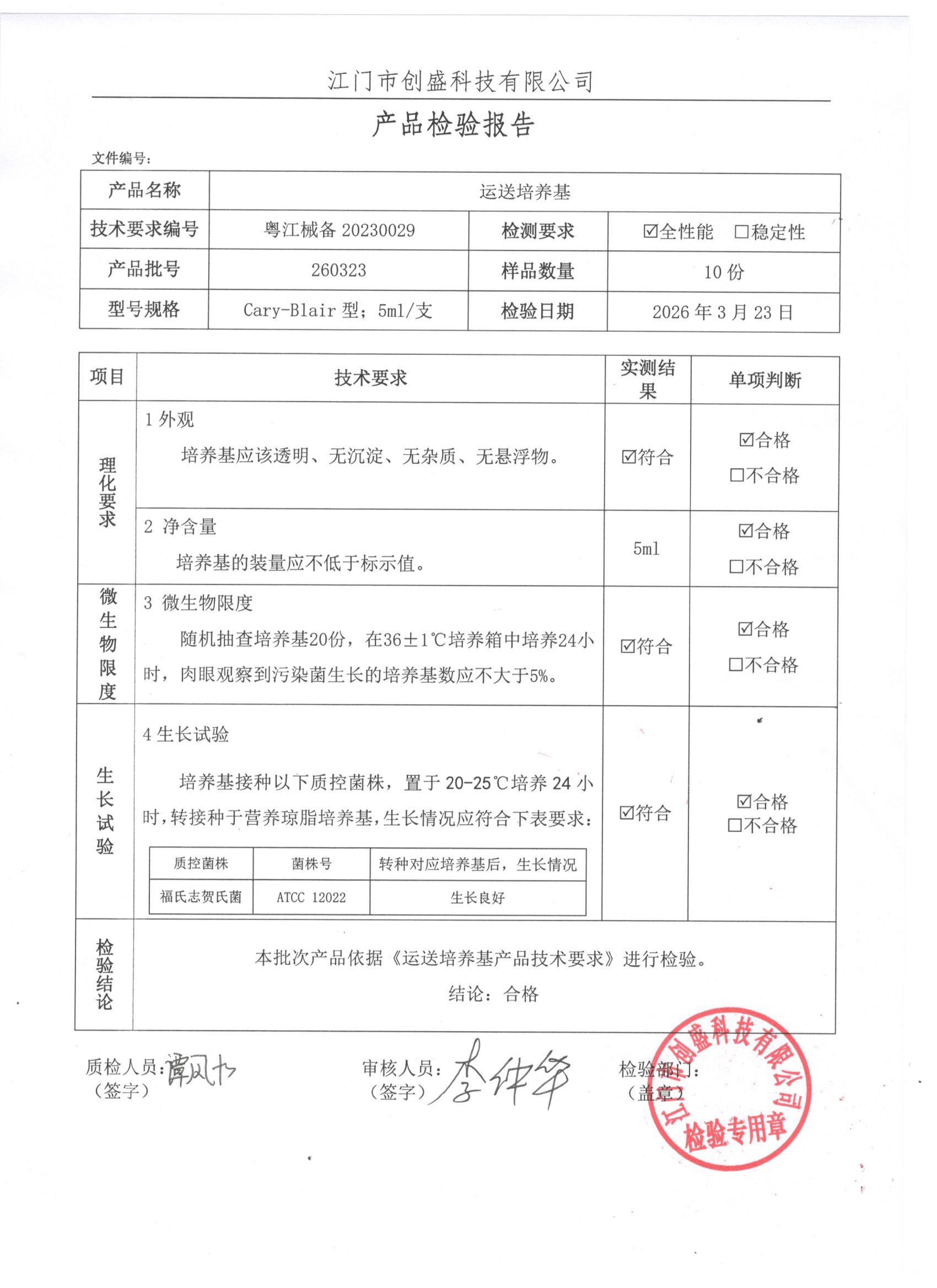 - 运送培养基 260323 5ml 江门创盛 下载文件