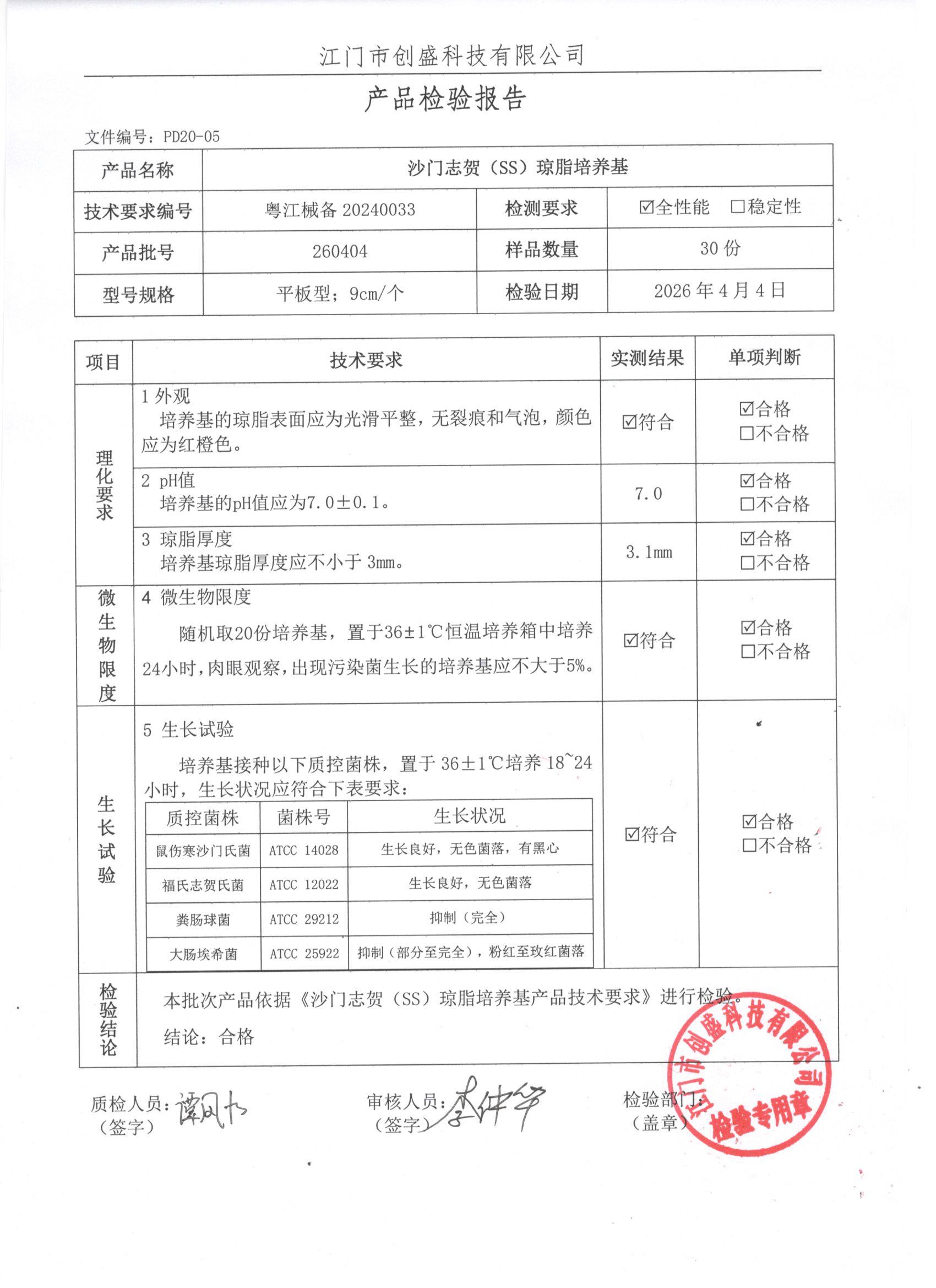 - 沙门志贺(SS)琼脂培养基 251203 7cm、9cm 江门创盛 下载文件
