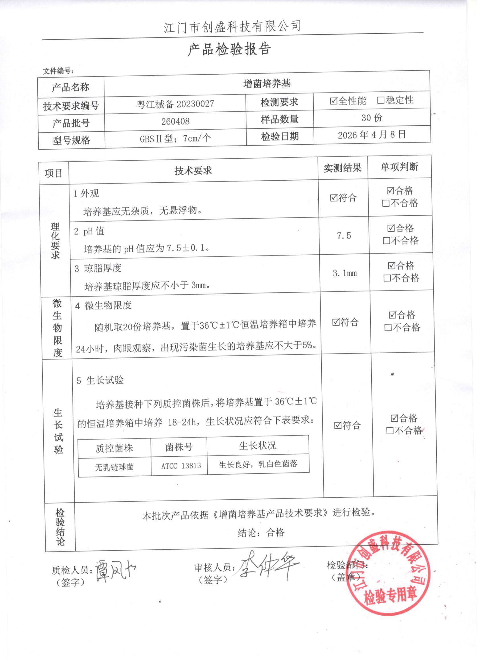 - 增菌培养基(GBS II型) 260408 7cm 江门创盛 下载文件