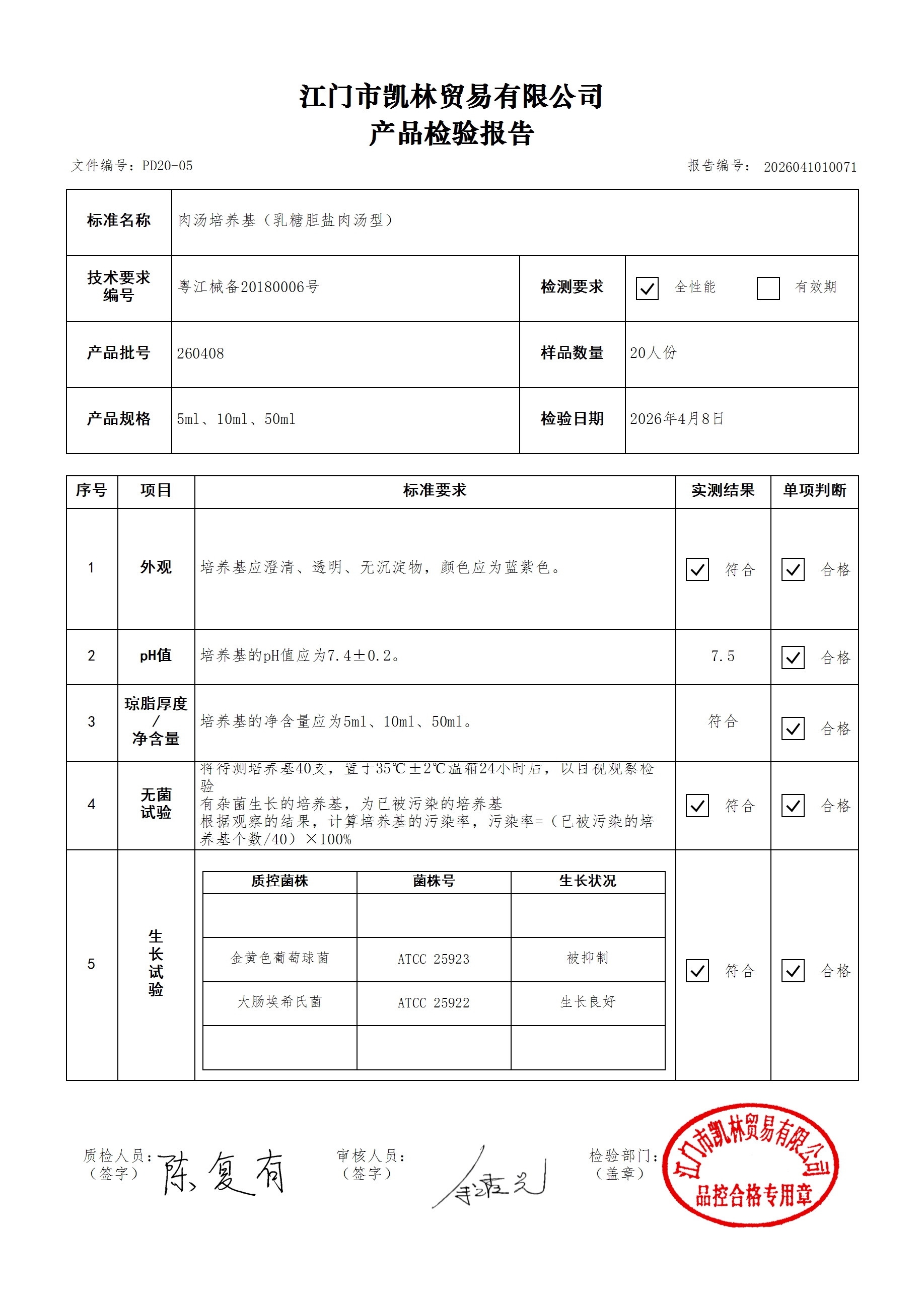 - 肉汤培养基(乳糖胆盐肉汤型) 260408 5ml、10ml 江门凯林 下载文件