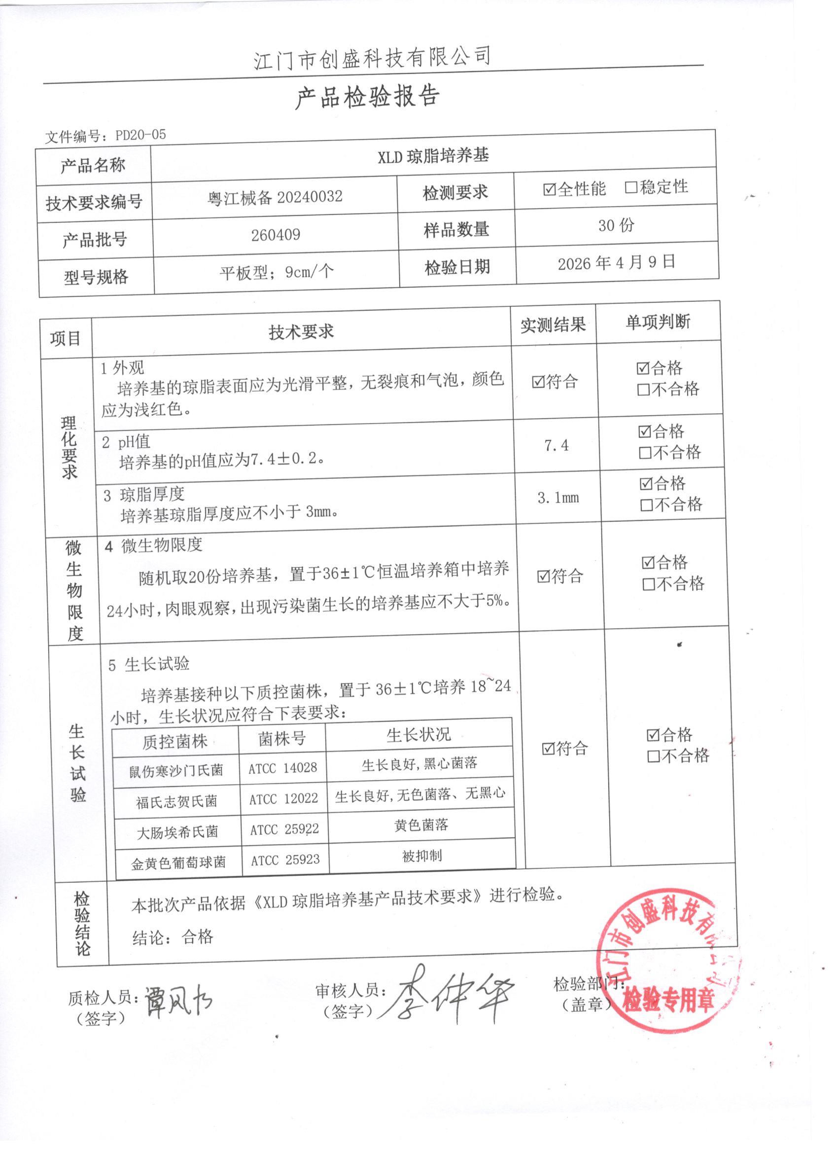 - XLD琼脂培养基 260409 9cm 江门创盛 下载文件