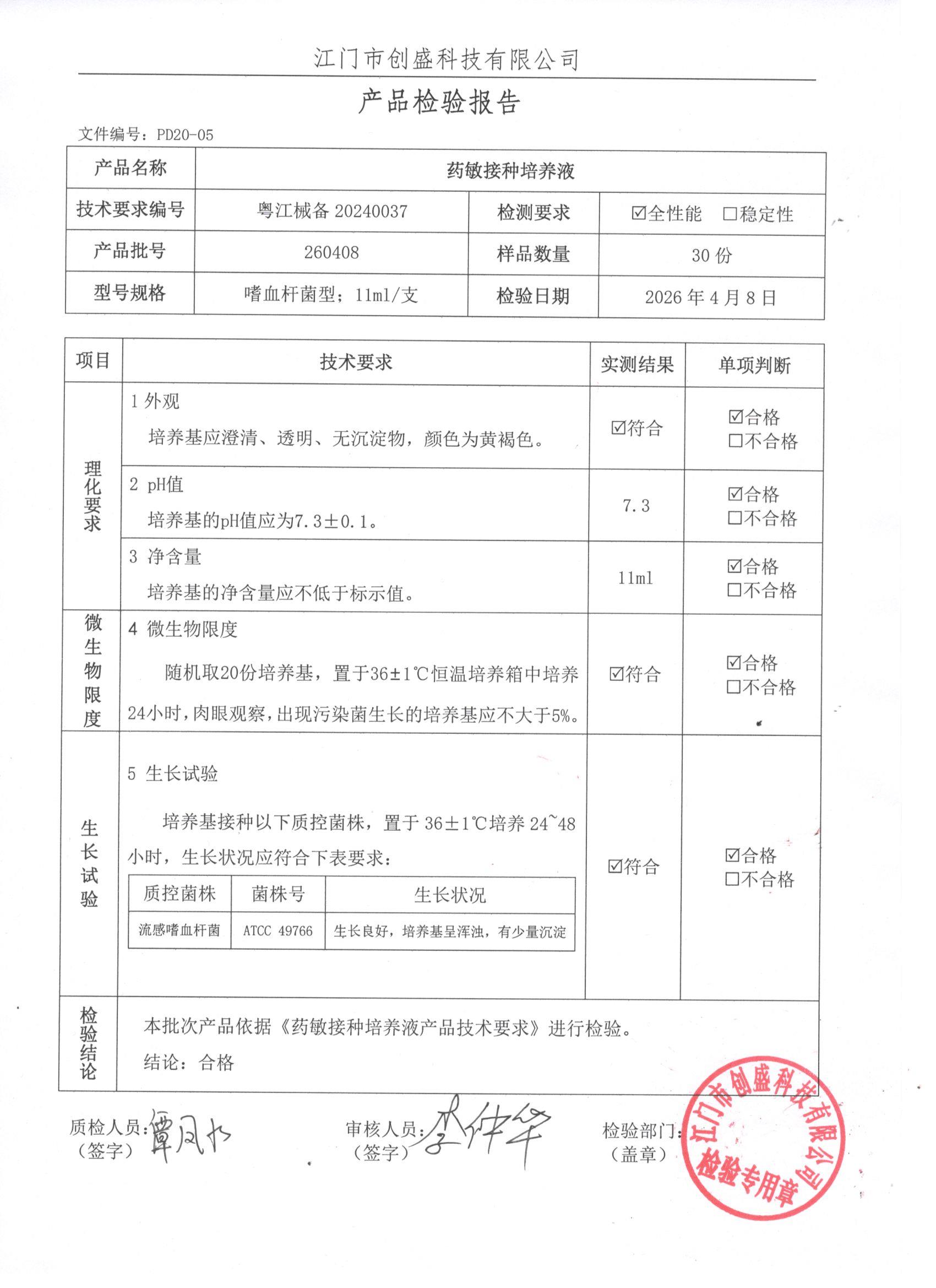 - 药敏接种培养液(嗜血杆菌型) 260408 11ml 江门创盛 下载文件