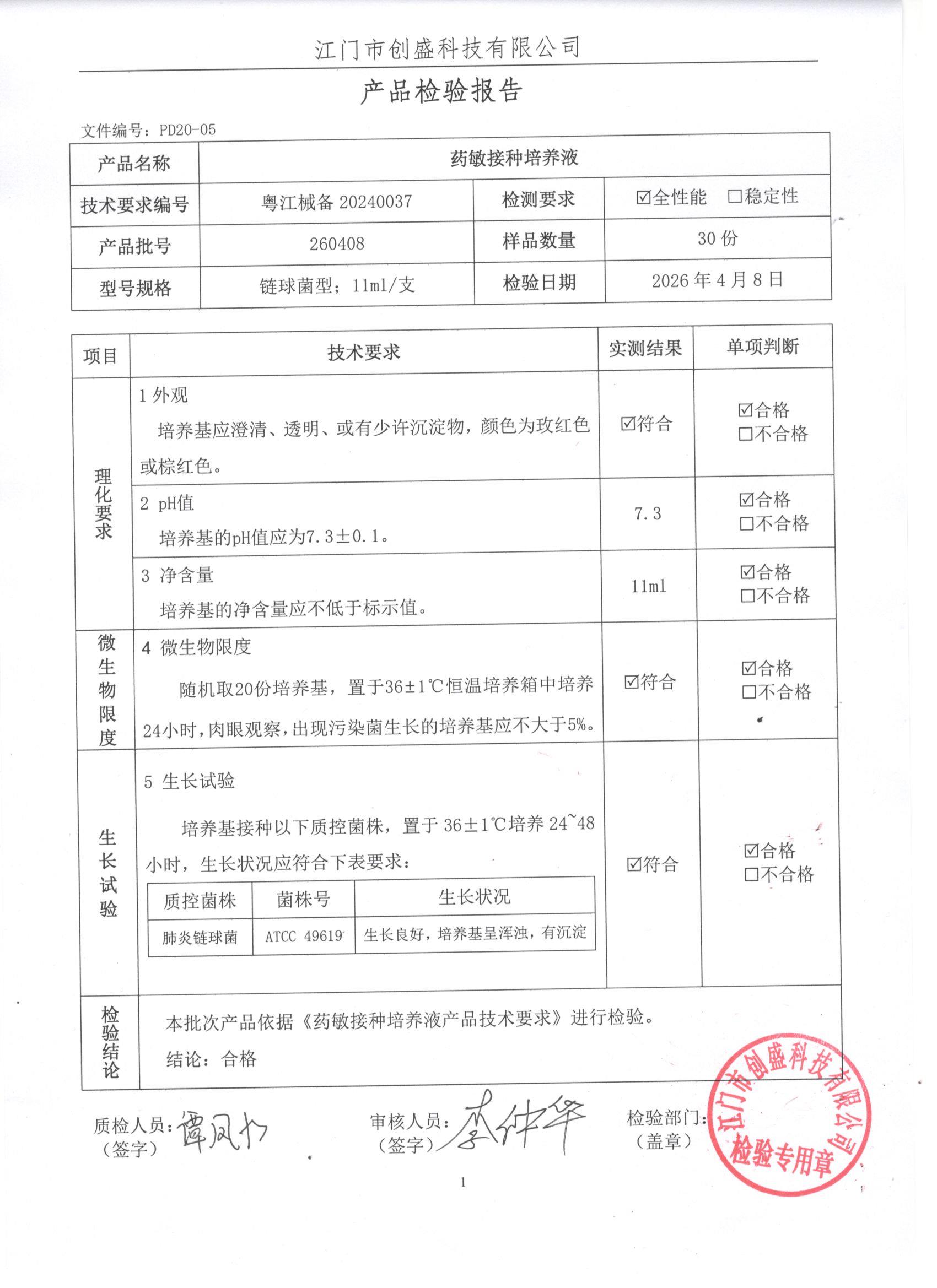 - 药敏接种培养液(链球菌型) 260408 11ml 江门创盛 下载文件