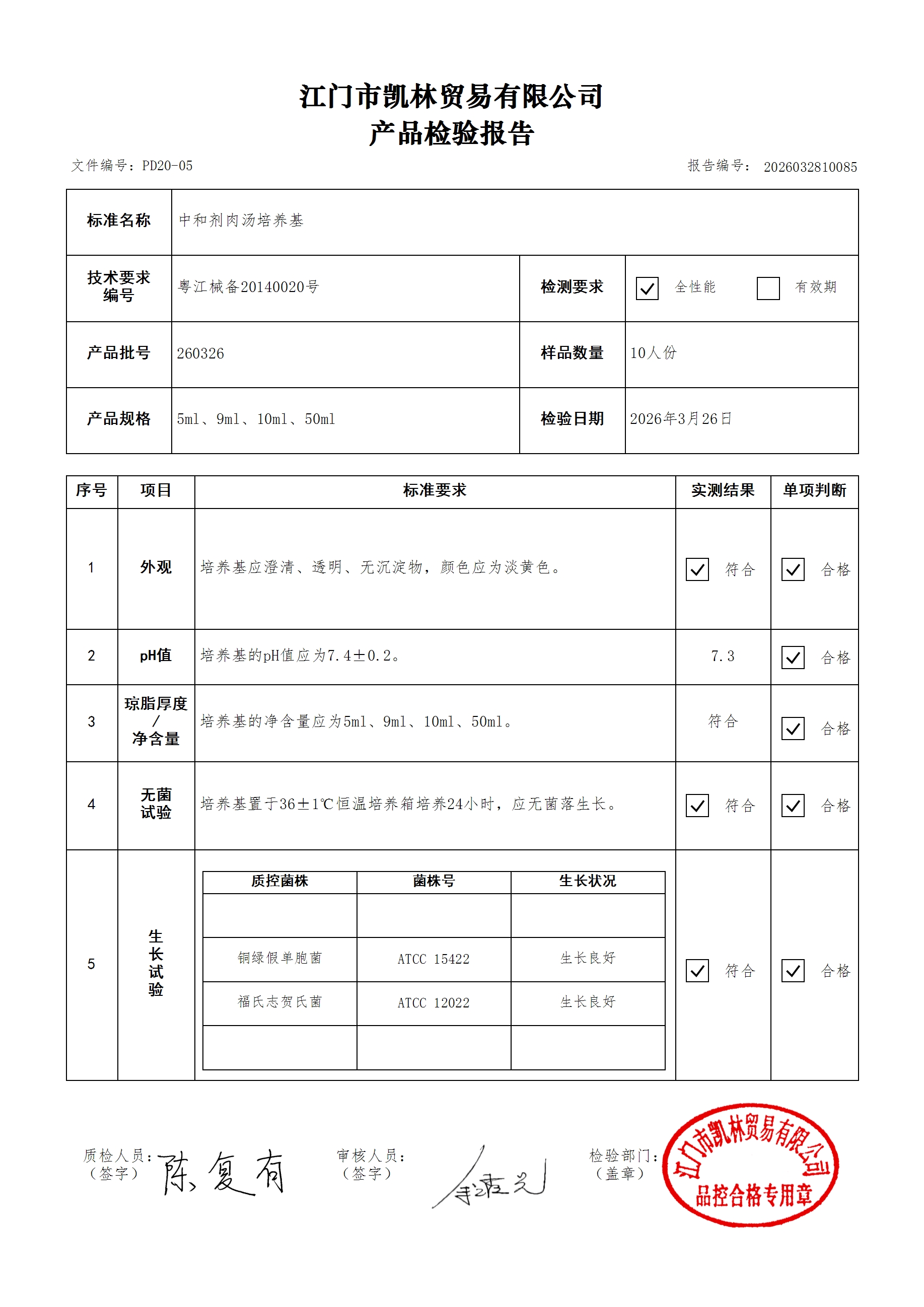 - 肉汤培养基(厌氧菌肉汤型) 251126 10ml 江门凯林 下载文件